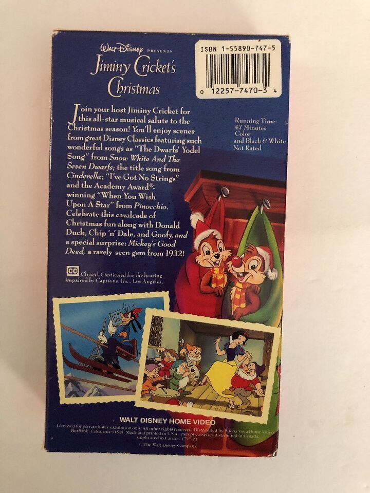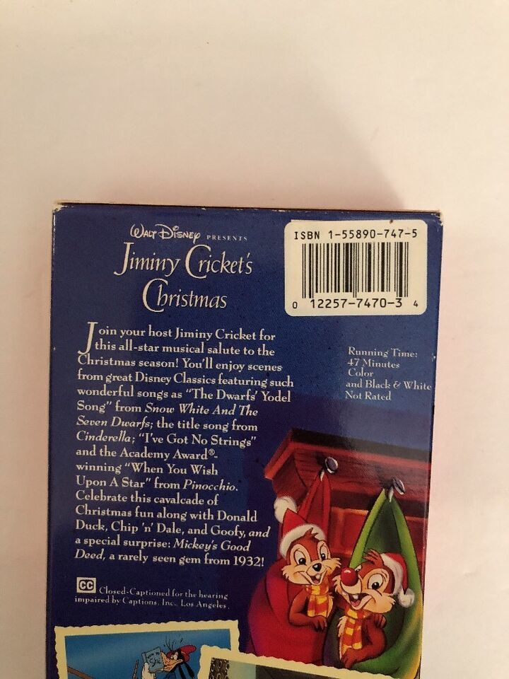 Walt Disney Presents Jiminy Crickets Christmas VHS-TESTED-RARE VINTAGE-SHIP N24H