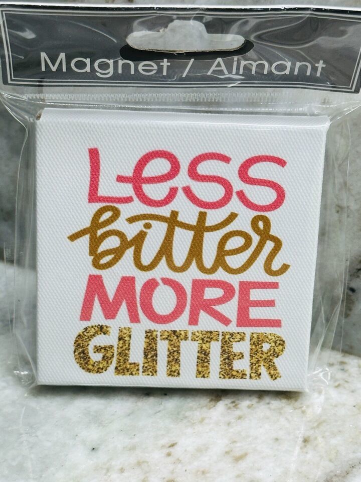 Greenbrier Square Vinyl Refrigerator Magnet.”Less Bitter More Glitter”. 2.5x2.5