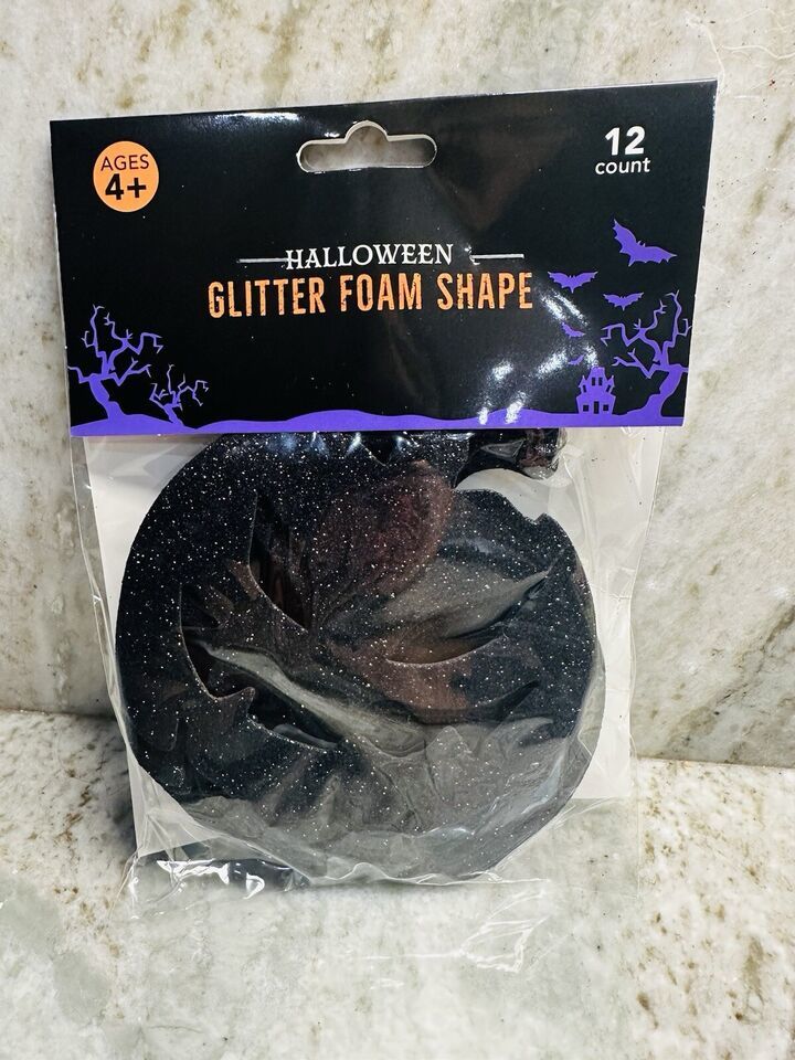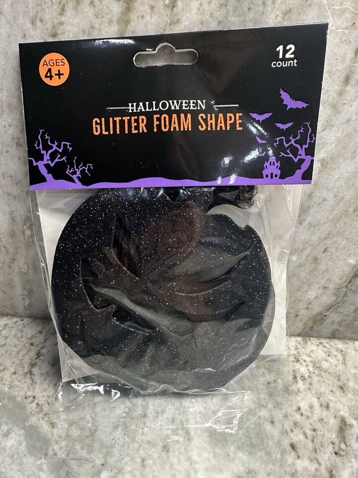 Halloween Glitter Black Pumpkins Foam Shape 4+ 12ct