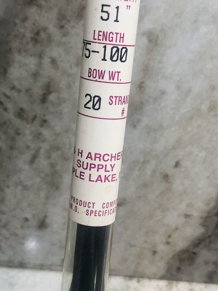 ShipN24Hours.New H&H-Archery:Bowstring 51”Lenght. 75-100 Bow Wt. Strands#20.