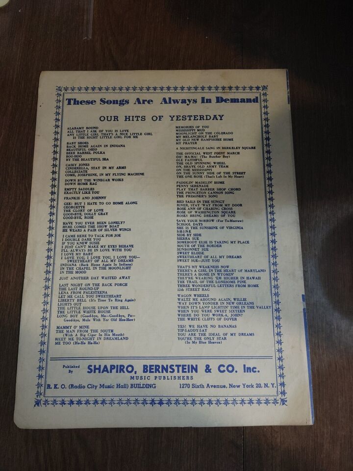 AUTHENTIC SHEET MUSIC FROM THE SHEET MUSIC PUBLISHER Sharpiro berenstein company
