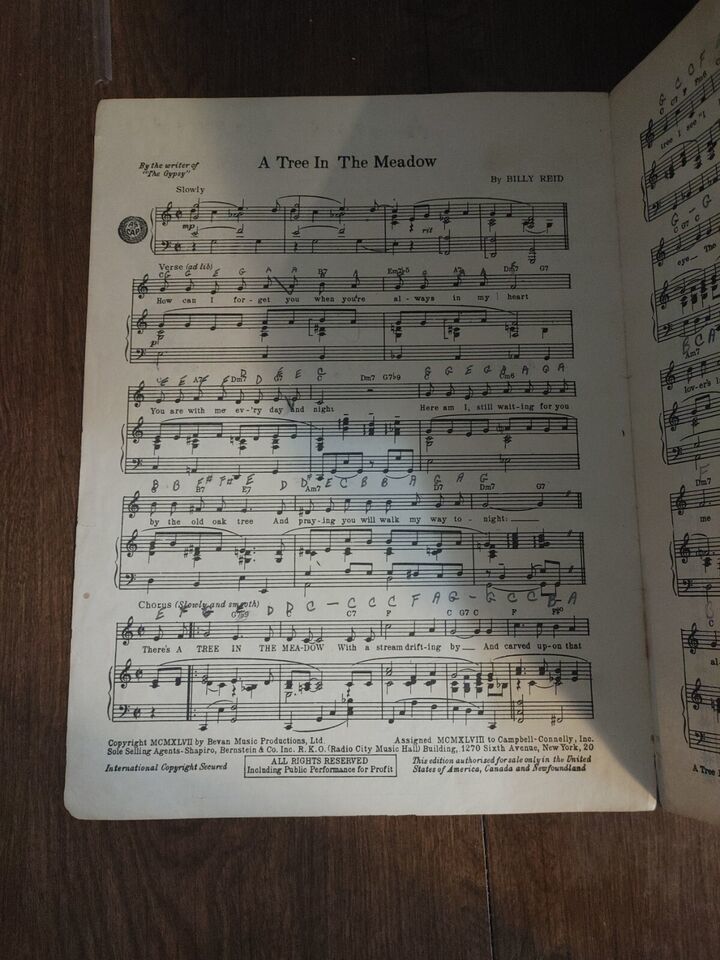 1947 sheet music, A Tree in the Meadow by Billy Reid, Margaret Whiting