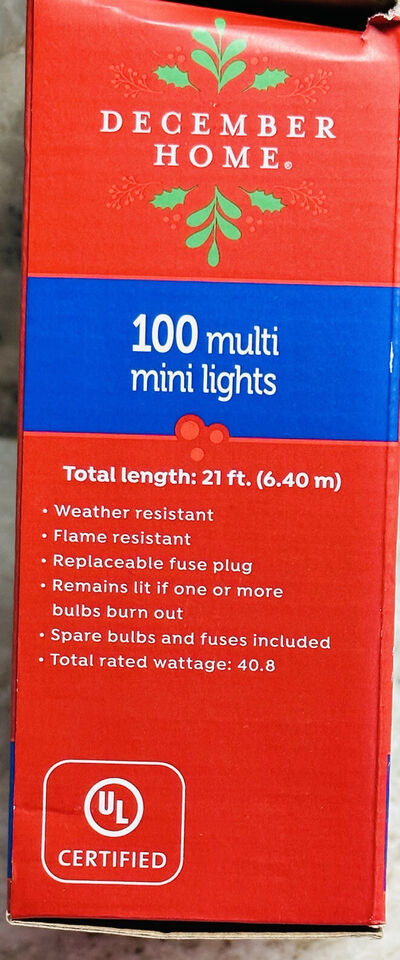 December Home 100 Multi Mini Lights 20ft. Lighted Length-Indoor/Outdoor