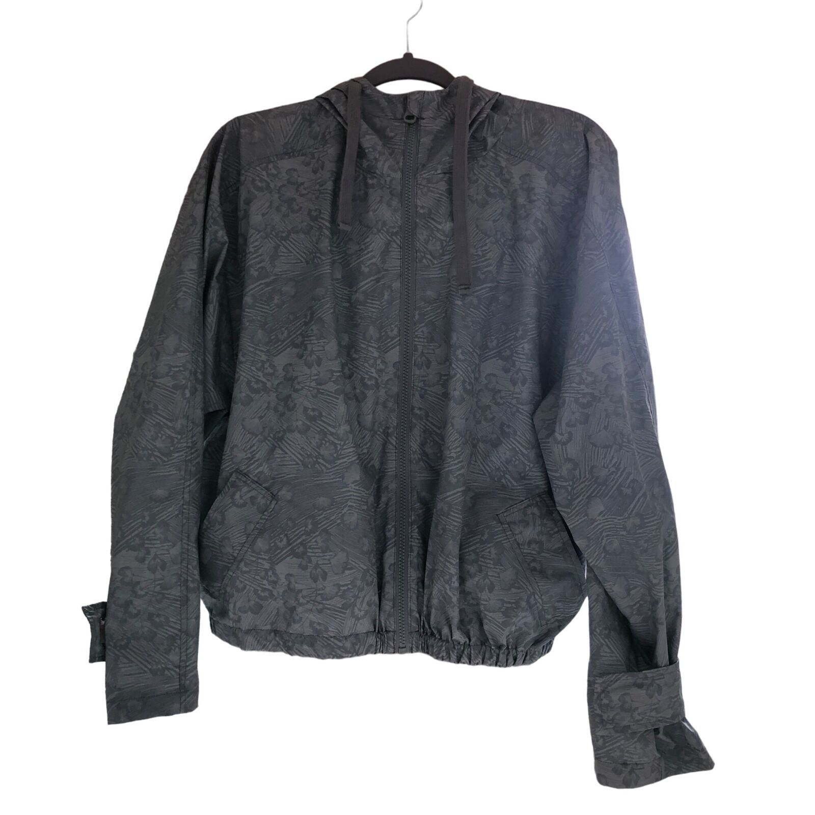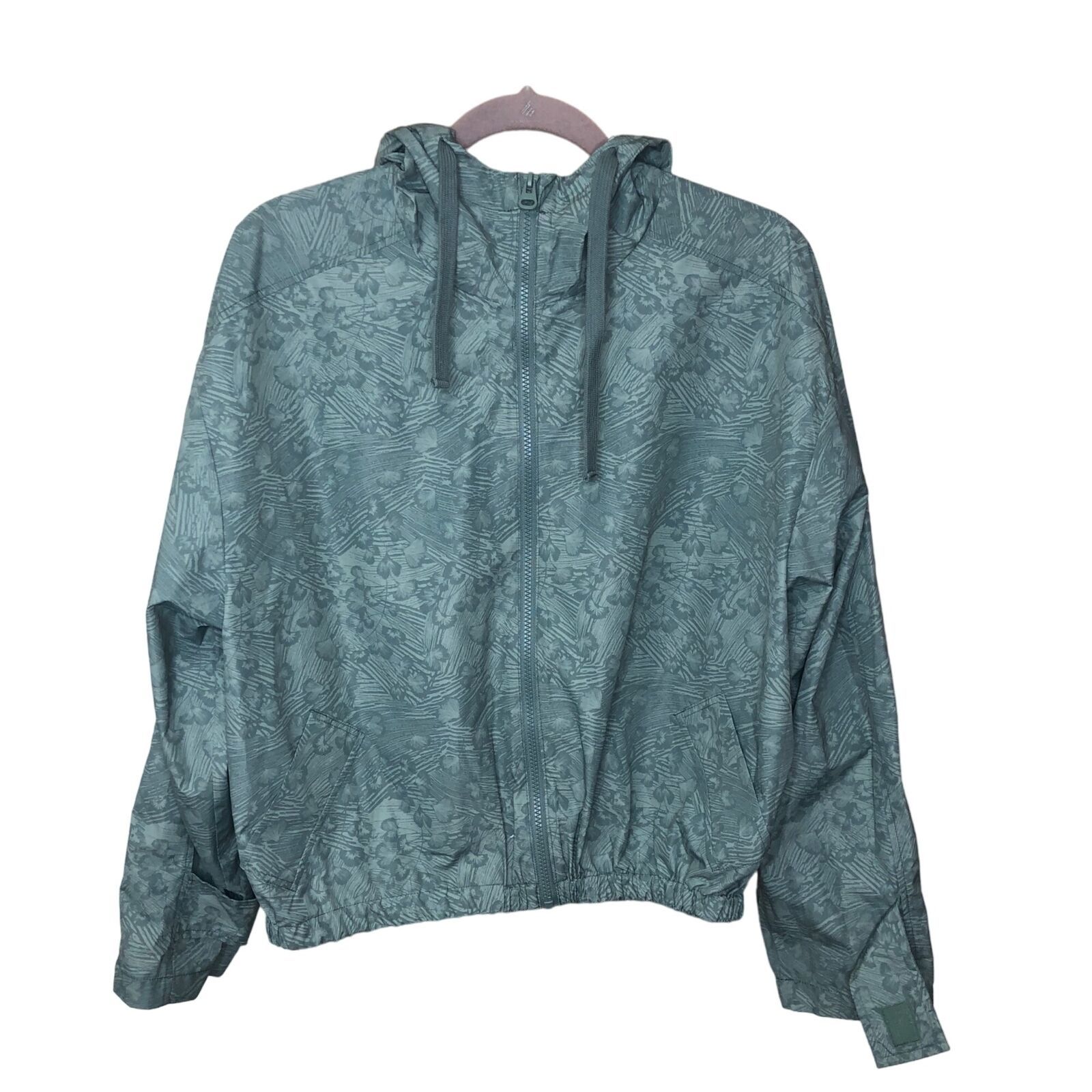 Body & Sol Lightweight Hooded Jacket Womens Size Large Leaf Pattern Elastic Hem