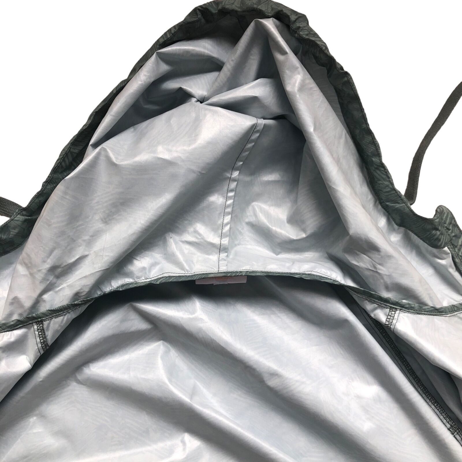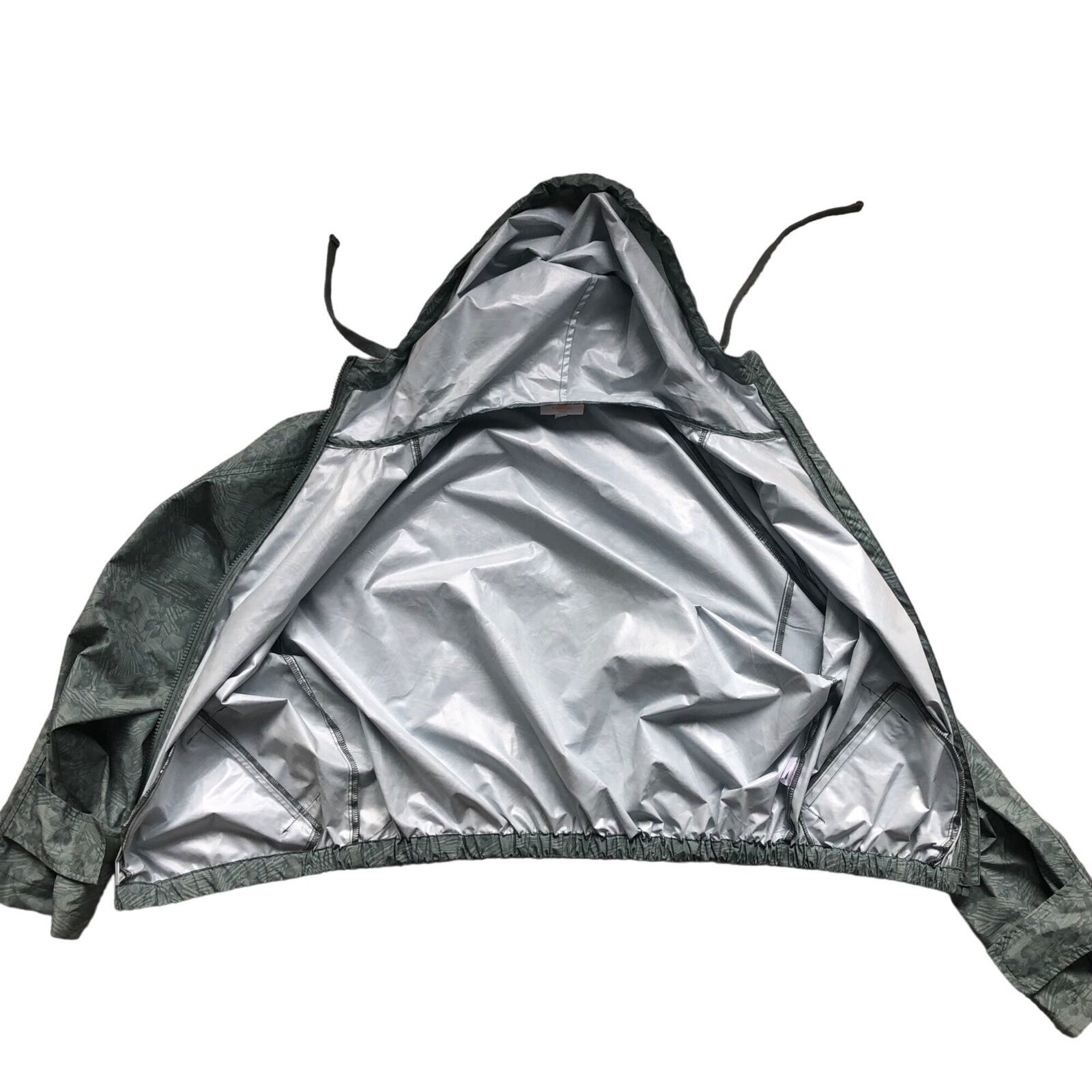 This Body Sol jacket combines style and function, offering a unique leaf pattern and lightweight design. Its elastic hem and cuffs provide comfort, while the hood adds practicality. READ NOTE