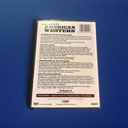 Immerse yourself in the world of cowboys and outlaws with this collection of Western classics. Perfect for fans of the genre, this set is a must-have for any movie lover. Get your copy of "The Great American Western - Vol. 5: Gene Autry" today.Please look at our store for unique collectibles and quality vintage items.