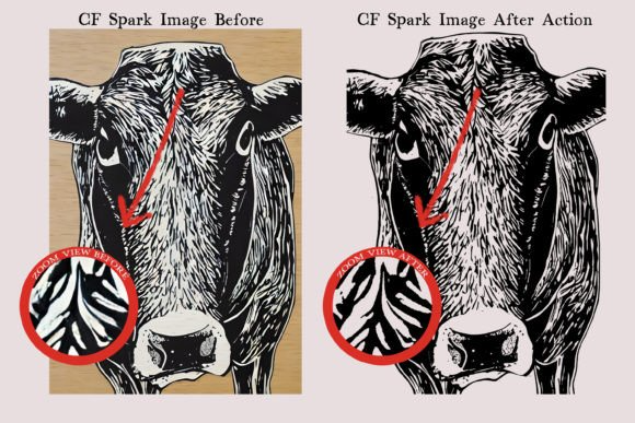 The magic of this action is you can take a small image, enlarge it to the size you need and then run the action and still get a sharp usable image. Iโve taken a 4096 x 4096 image, enlarged it to 9000 x 9000 pixels and ran the action and have gotten results Iโm extremely happy with. You can use this on your AI generated images, textures (to create transparent png overlays) and even with fonts/text!