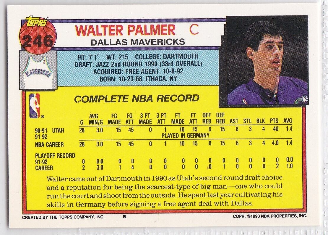 M) 1992-93 Topps Basketball Trading Card - Walter Palmer #246