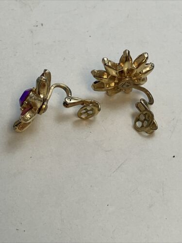 Trifari Crown Multi Colored Glass Sun Flower Clip On Earrings