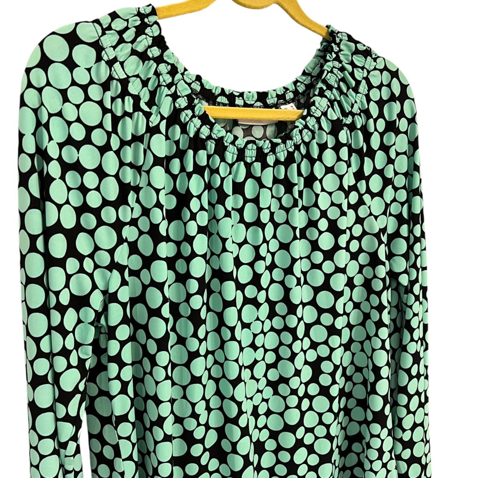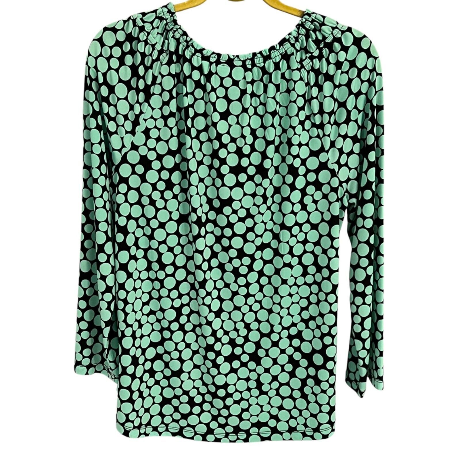 Susan Graver Womens Mint Green & Black Polka Dot Blouse M/L