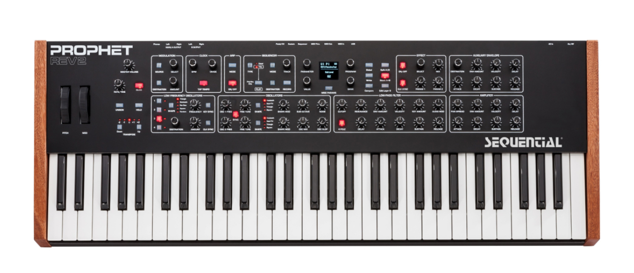 All of this polyphonic power is packed into a five-octave, premium-quality, semi-weighted keyboard with velocity and channel aftertouch. Other road-worthy features include an integrated power supply, USB support, and a crisp OLED display, making the Prophet Rev2 an ideal instrument for gigging or recording, and an analog powerhouse like no other.