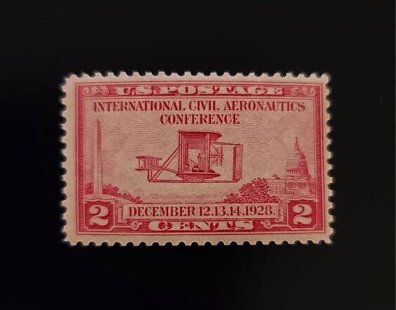 1928 2c Wright Airplane, Aeronautics Conference, Carmine Scott 649 Mint F/VF LH