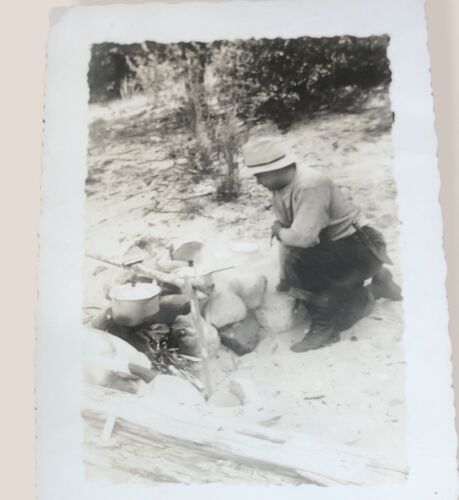 Vintage Photo Of An 1930?s-1940?s Outdoorsman Building A Fire On The Beach.