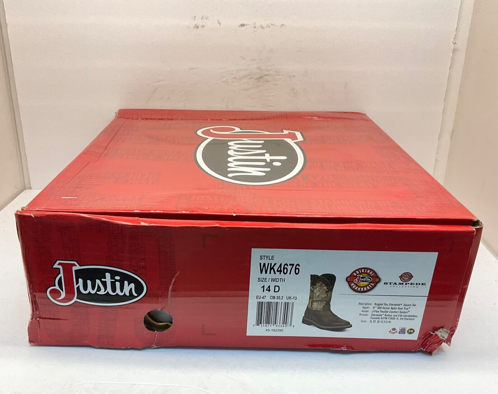 Justin Men’s Pull-On Stampede Square Toe WK4676 Western Boots Camo Size 14D