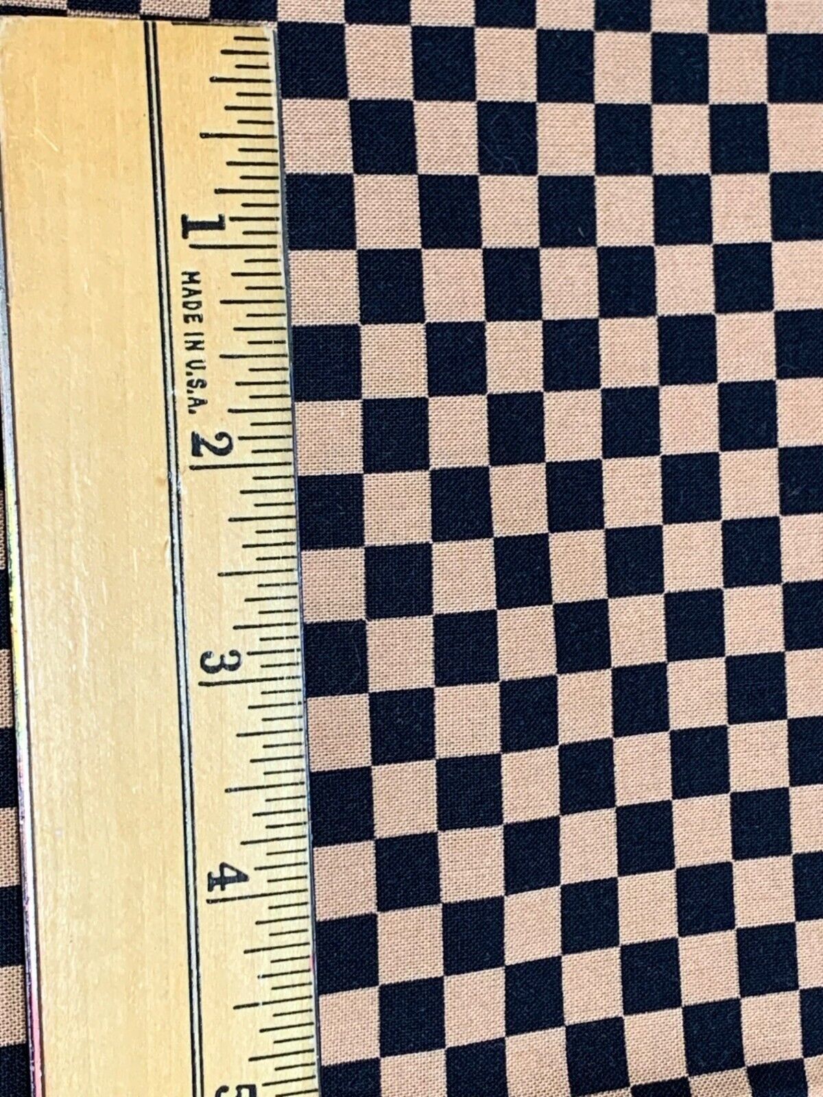 Checkerboard Fabric Cotton 20" x 44" Wide Black & Brown Marcus Brothers Kitty Ci