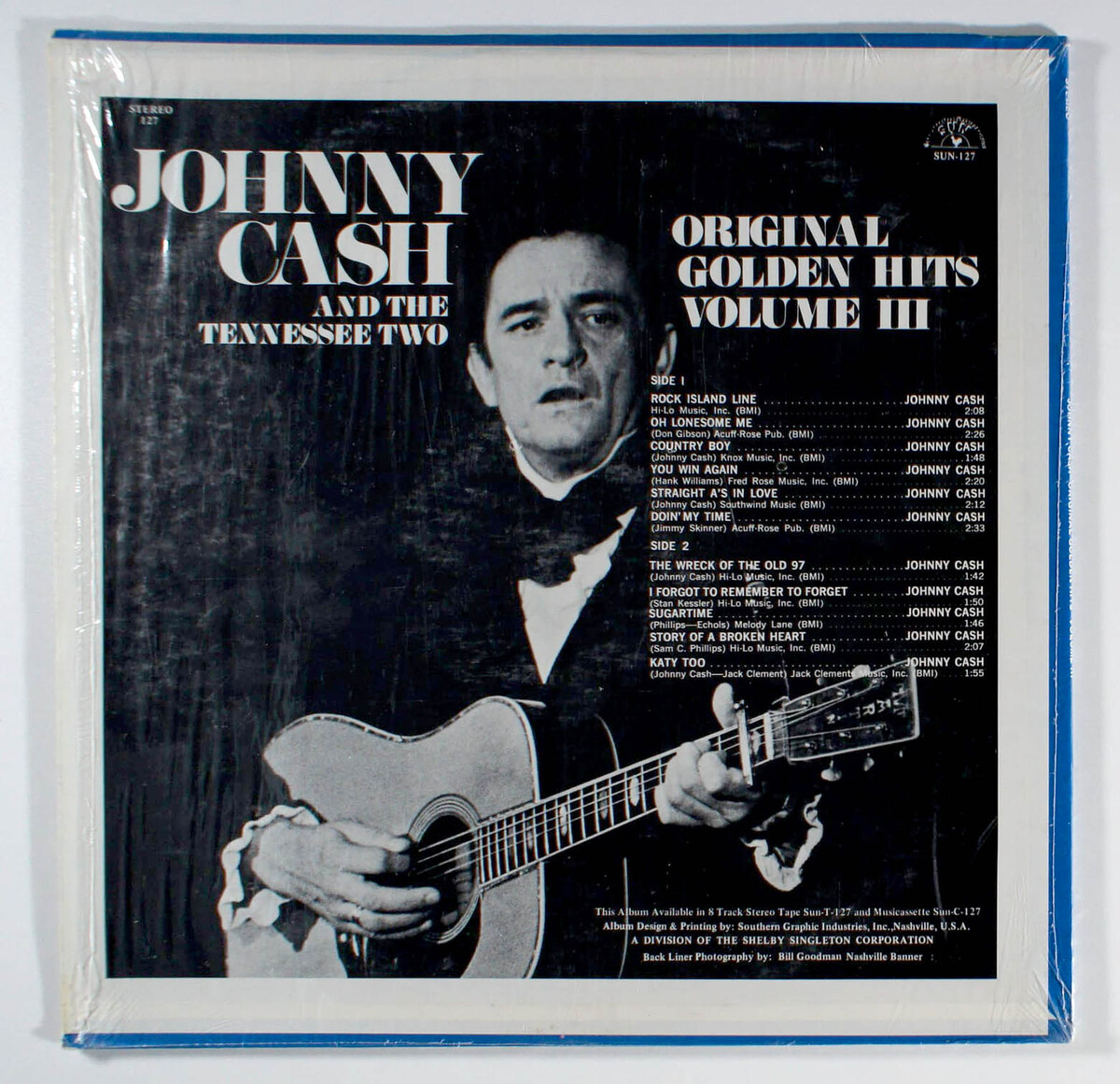 Original Golden Hits Volume III, by Johnny Cash, is a collection of his hits such as Rock Island Line, Oh Lonesome Me, I Forgot to Remember to Forget, Sugartime, Story Of A Brokenheart, and Katy Too among others.