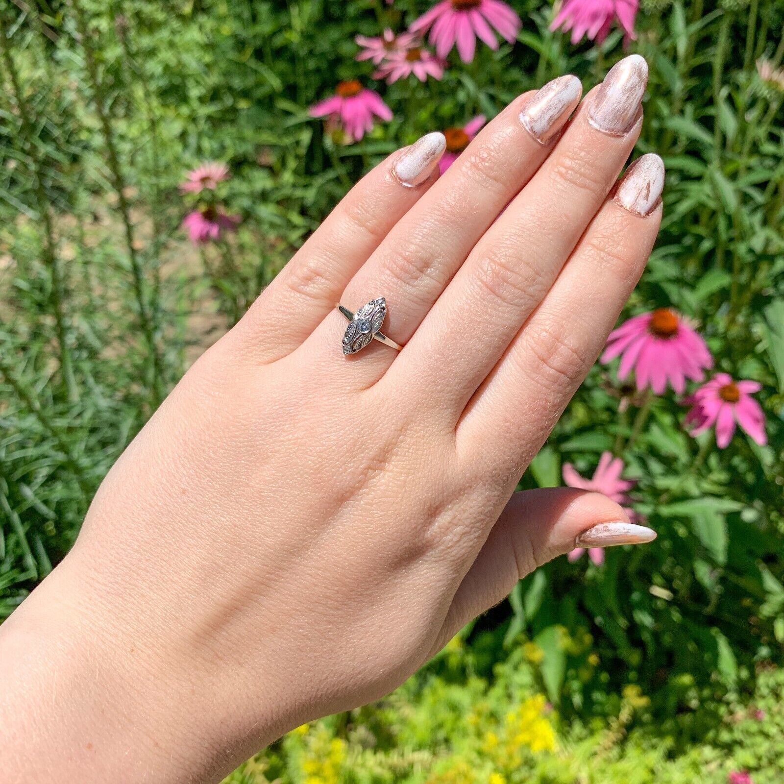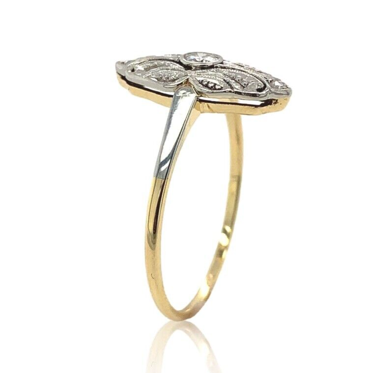 Vintage 10k Yellow Gold Genuine Natural Diamond Ring w/White Gold Top (#J6819)