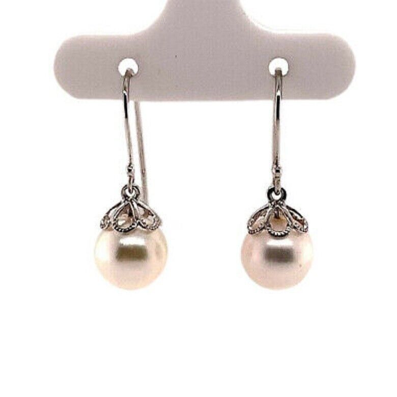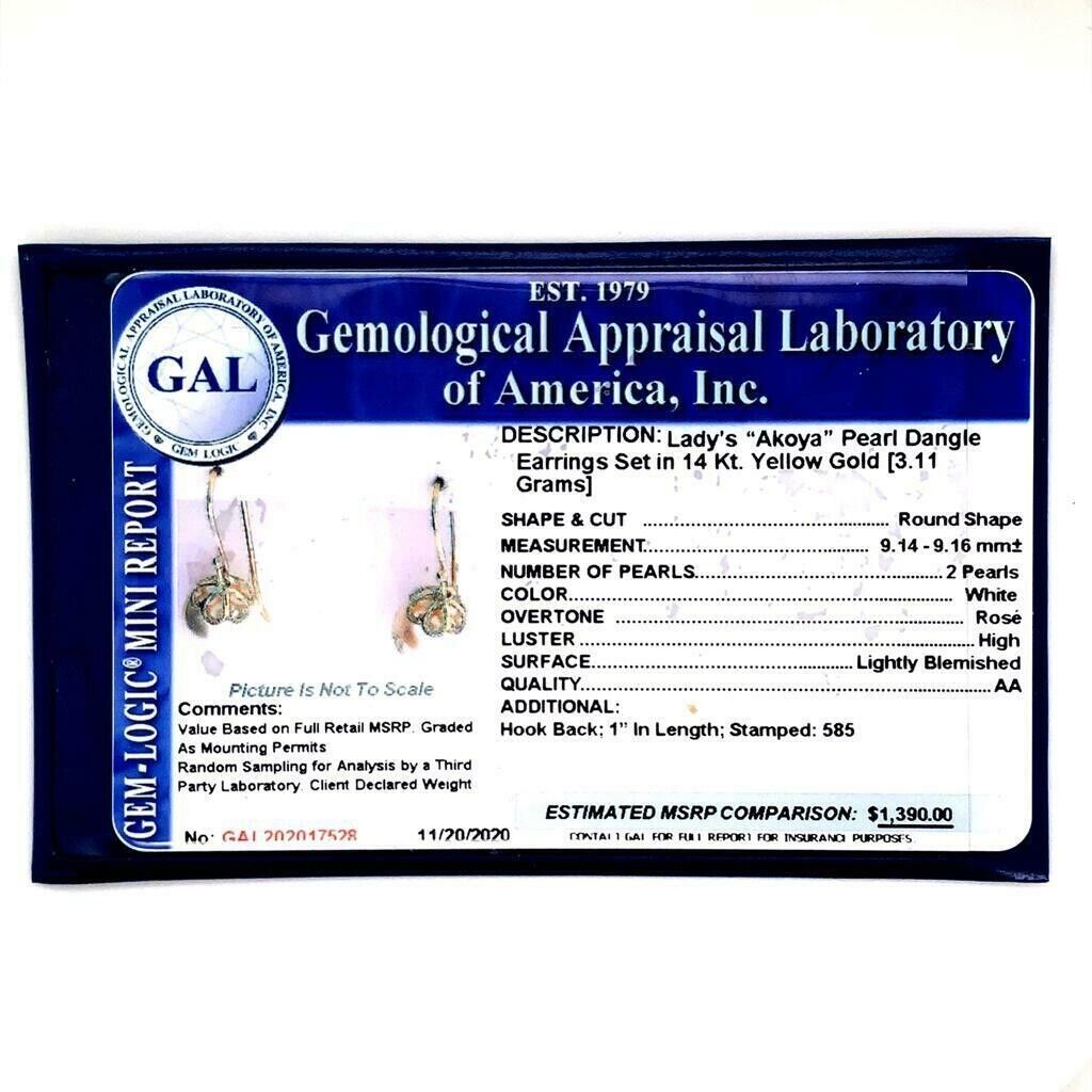 Fine Quality Akoya Pearl Earrings 14 KT Yellow Gold 9.16 mm Certified $1,390 017528