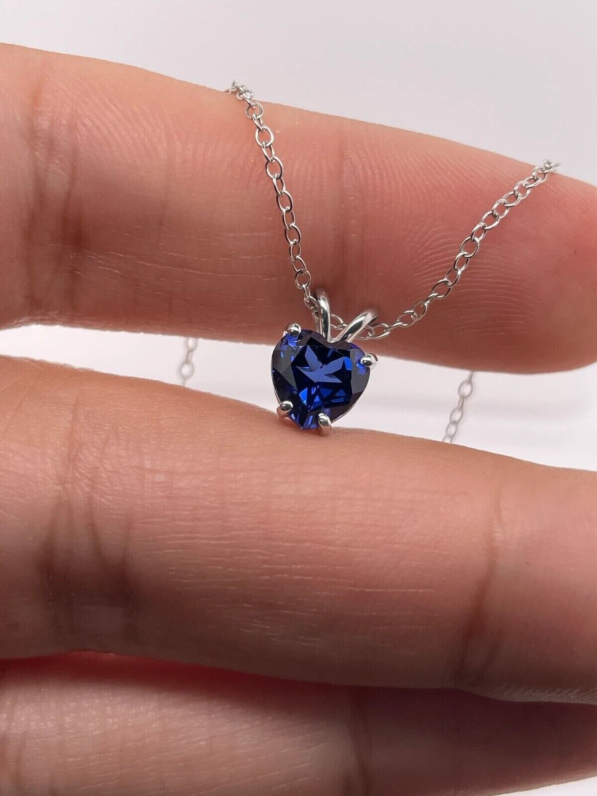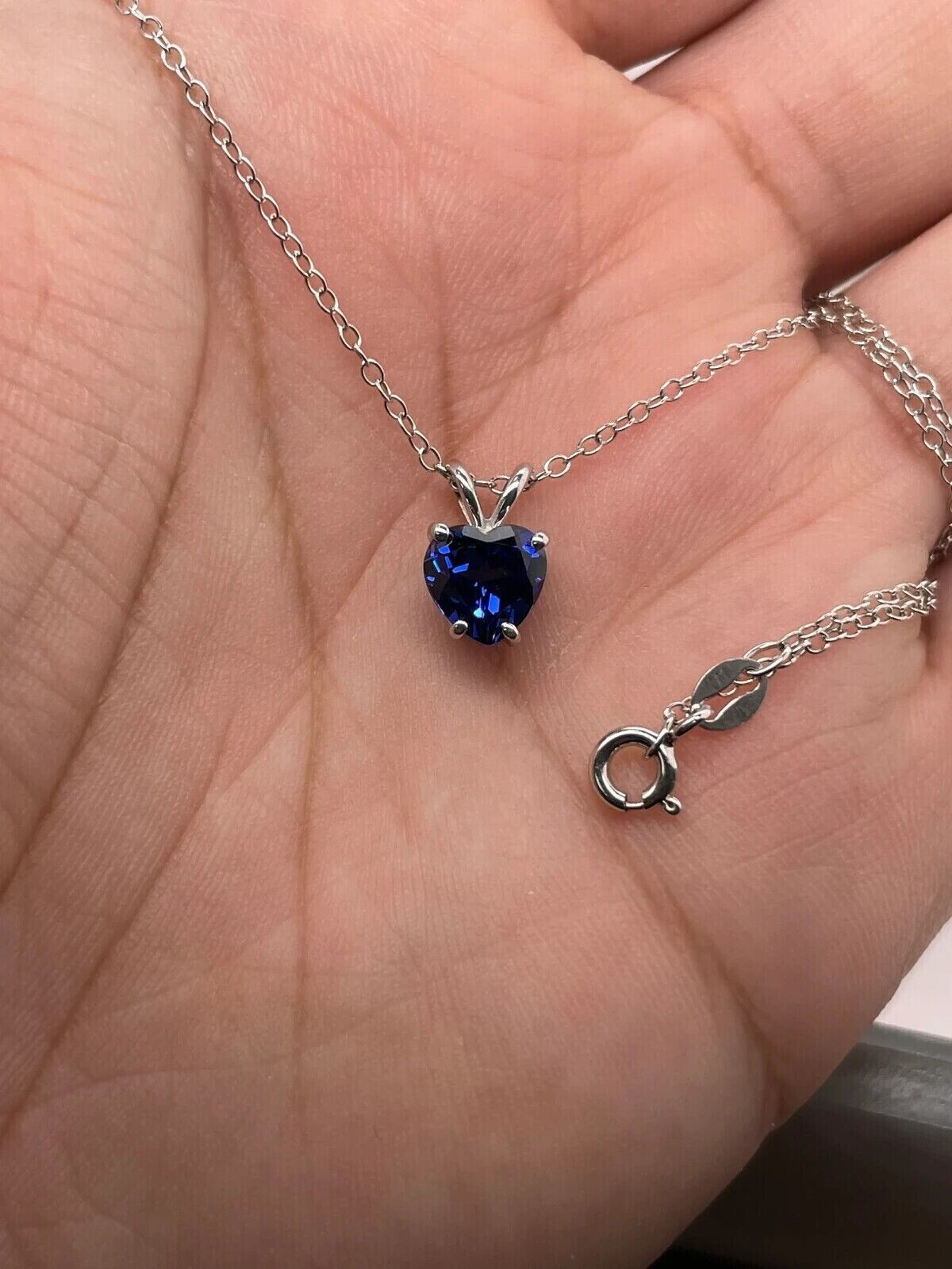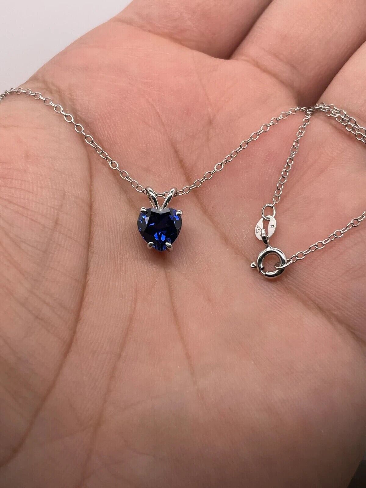 2Ct Heart Cut Lab Created Blue Sapphire Solitaire Pendant 14K White Gold Plated