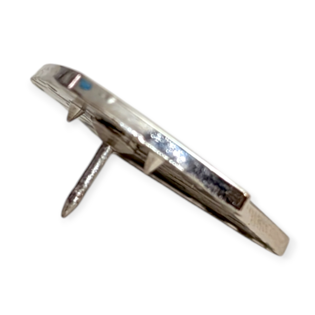 • Sculpted metal with enamel, and finished with a rubber back to keep secure.
