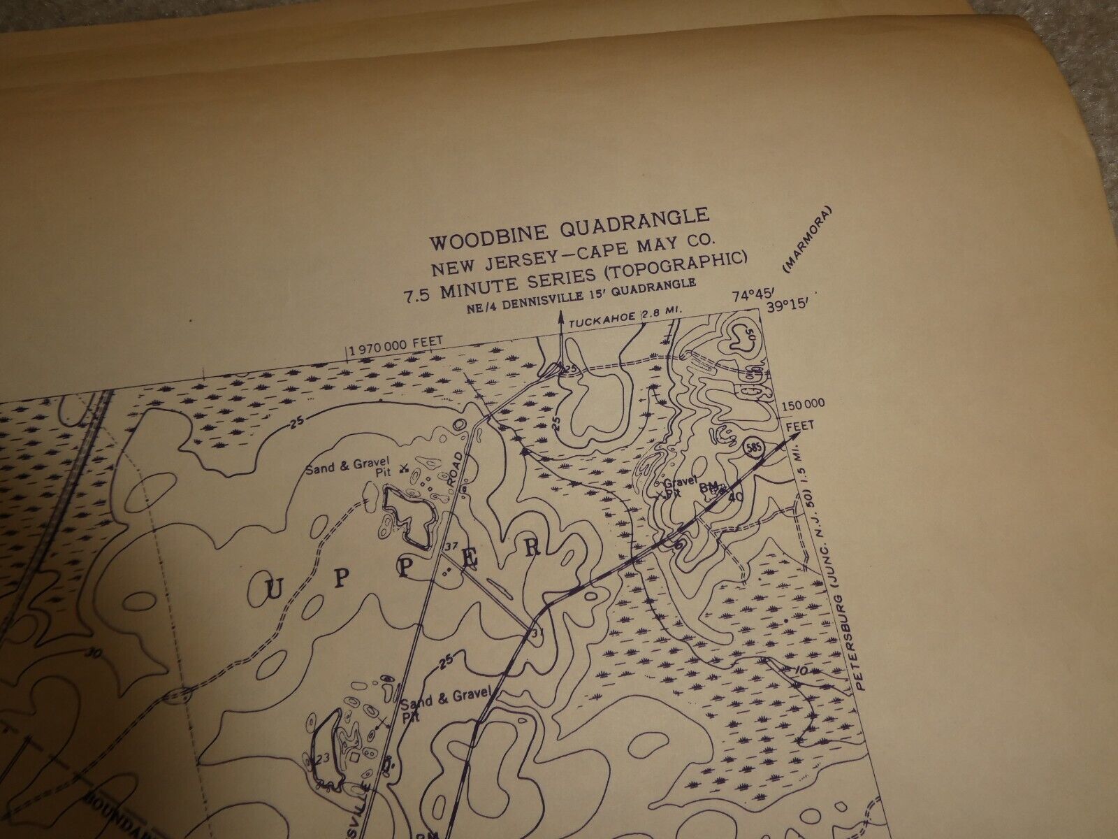 Vintage 1940s US Survey Wall Map Woodbine Quadrangle New Jersey