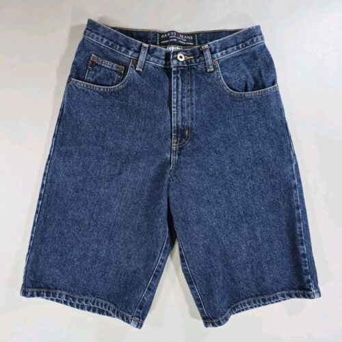 Guess Jeans Mens Loose Fit Dark Blue Jean Shorts Size 29 Back Patch