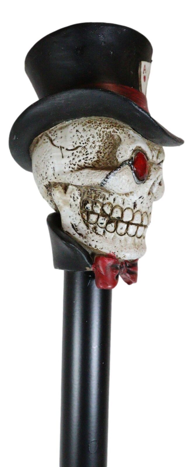 Ebros Poker Skull with Top Hat of Aces Decorative Prop Cosplay Walking Cane