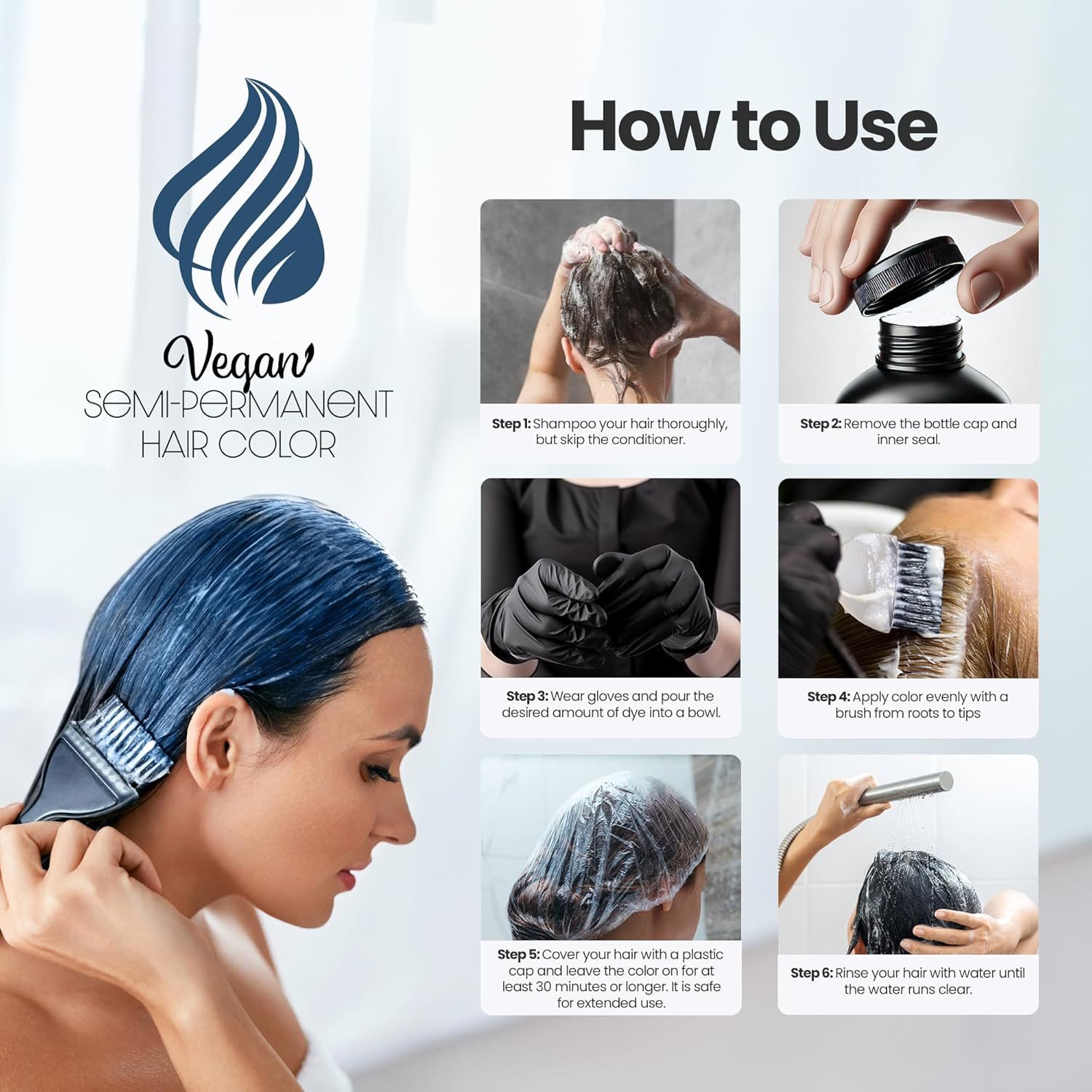 Meanwhile, this formula maintains hair health and vitality, leaving tresses soft, silky, and manageable. The non-drip formula ensures a mess-free application, perfect for DIY at-home use. Whether you're a beginner or a pro, this semi permanent hair color blue guarantees a smooth coloring experience.