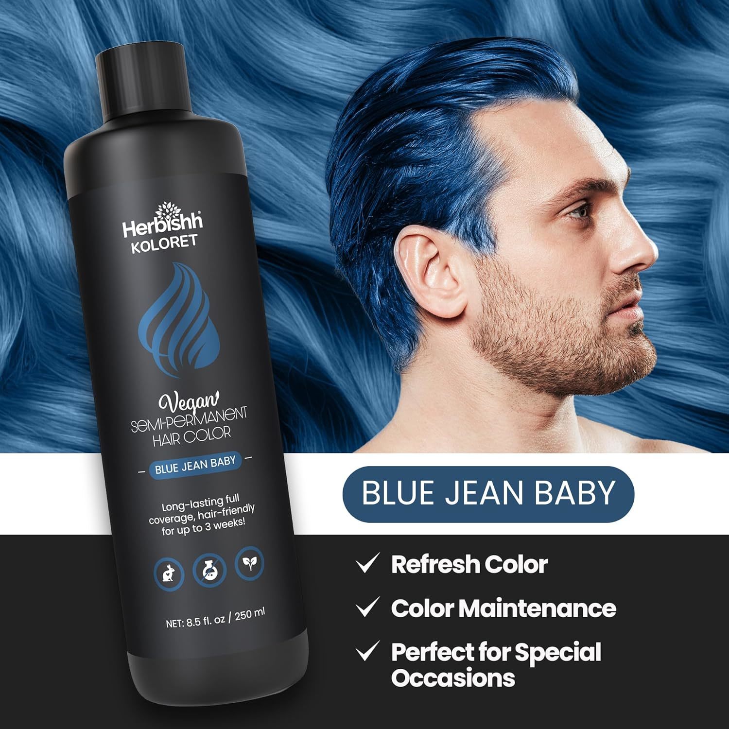 Discover vibrant and bouncy tresses with Herbishh Koloret Vegan Semi-Permanent Hair Color in Blue Jean Baby. This stunning blue hair dye transforms your look, adding boldness and vibrancy.