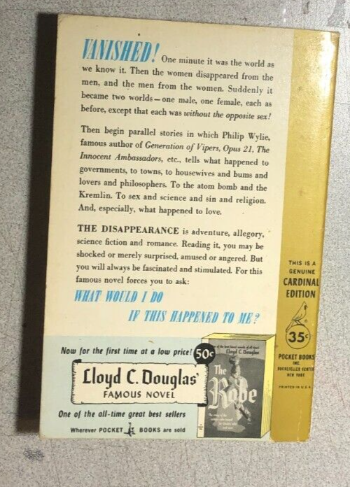 THE DISAPPEARANCEK by Philip Wylie (1958) Pocket Books paperback