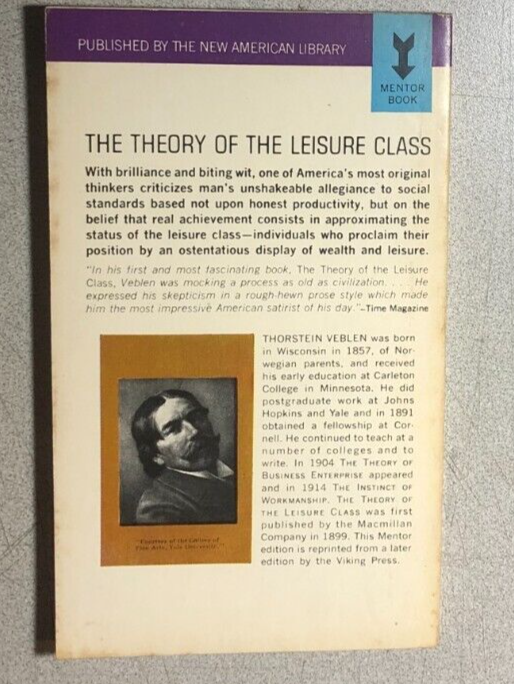 THE THEORY OF THE LEISURE CLASS by Thorstein Veblen (1963) Mentor paperback