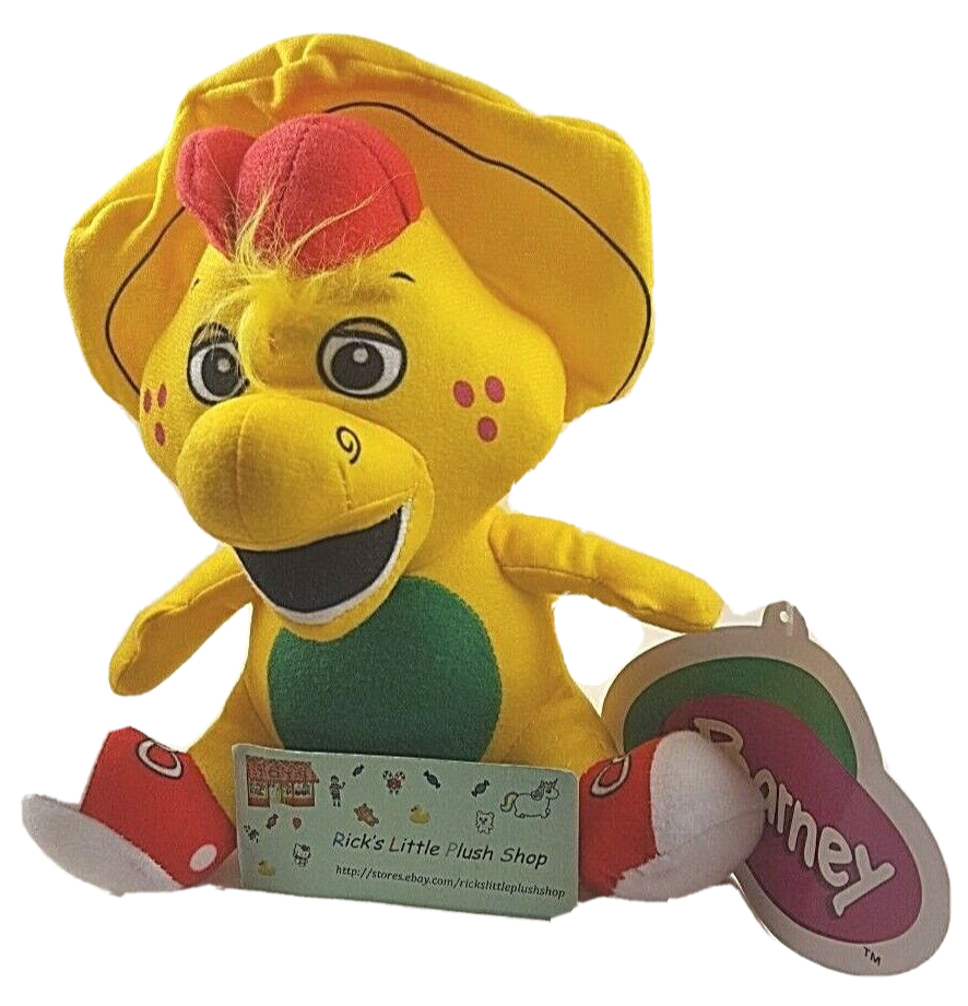 Introducing a soft and cuddly plush toy from the popular children's TV show, Barney Friends. This 8 inch stuffed animal features the beloved character, BJ the Dinosaur, in a cheerful yellow color. The toy is made of high-quality plush material and has never been used before.
