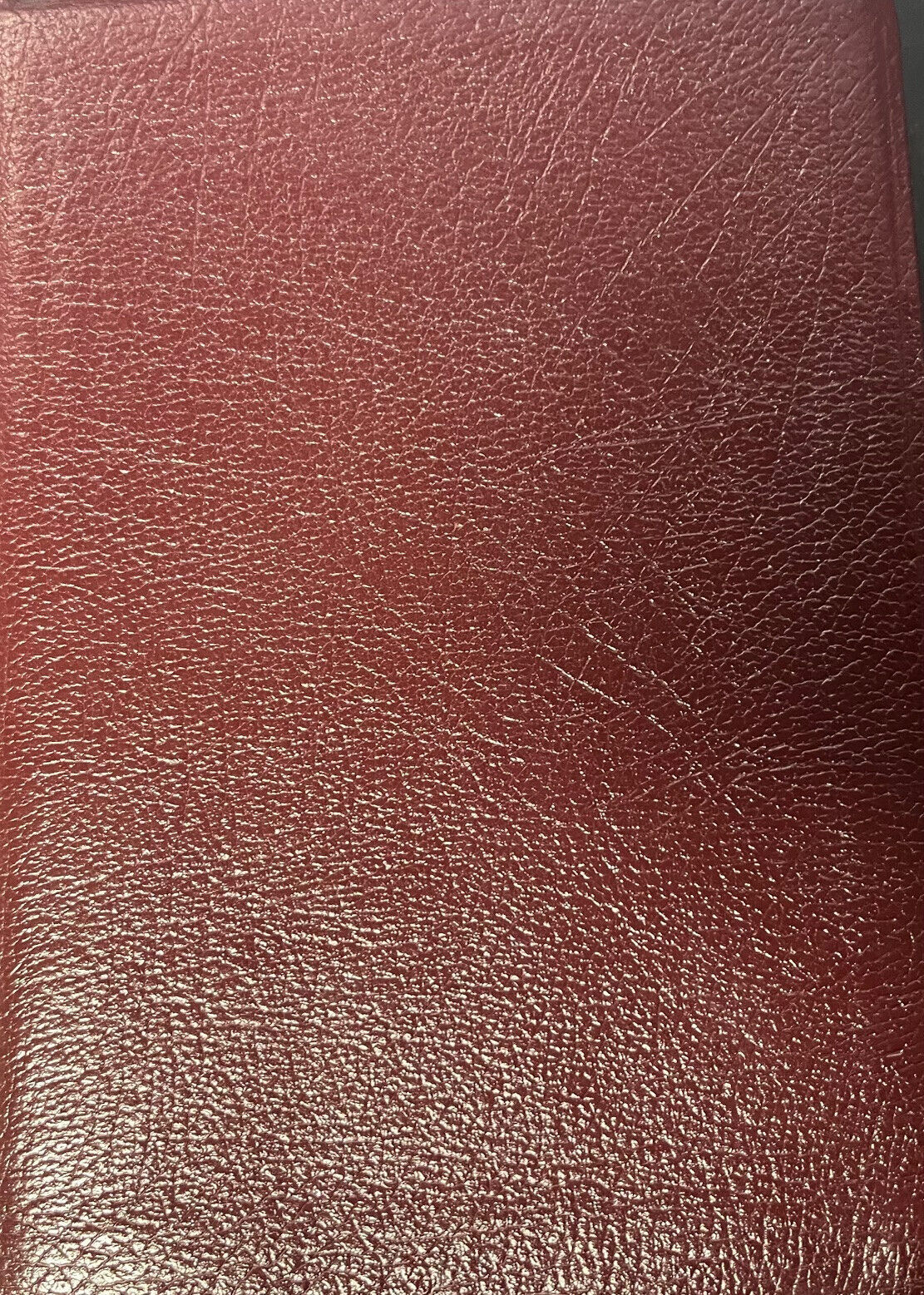 Burgundy genuine leather, includes black genuine leather cover. Minor separation at back of book. No marks in text. Not indexed.