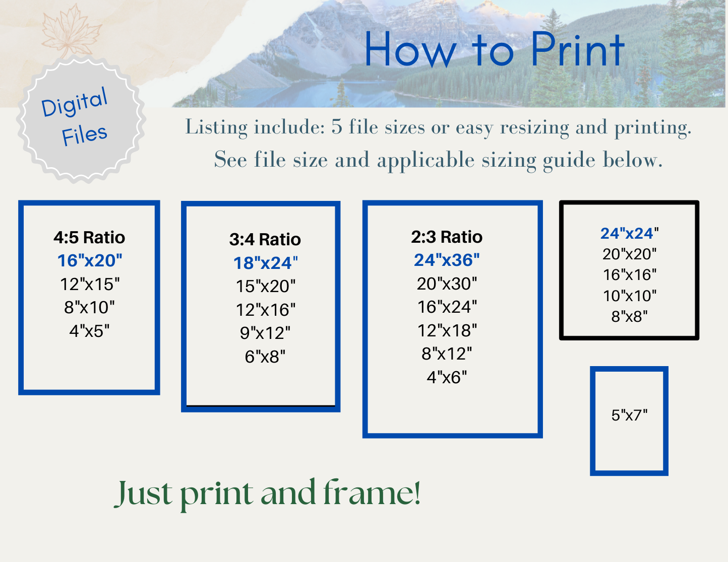 3.A 2:3 ratio file for printing sizes: 4”x6”, 8”x12”, 12”x18”, 16”x24”, 20”x30”, 24”x36”