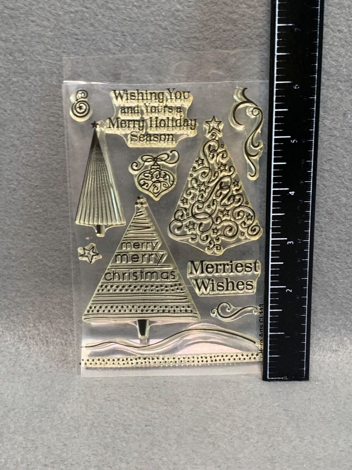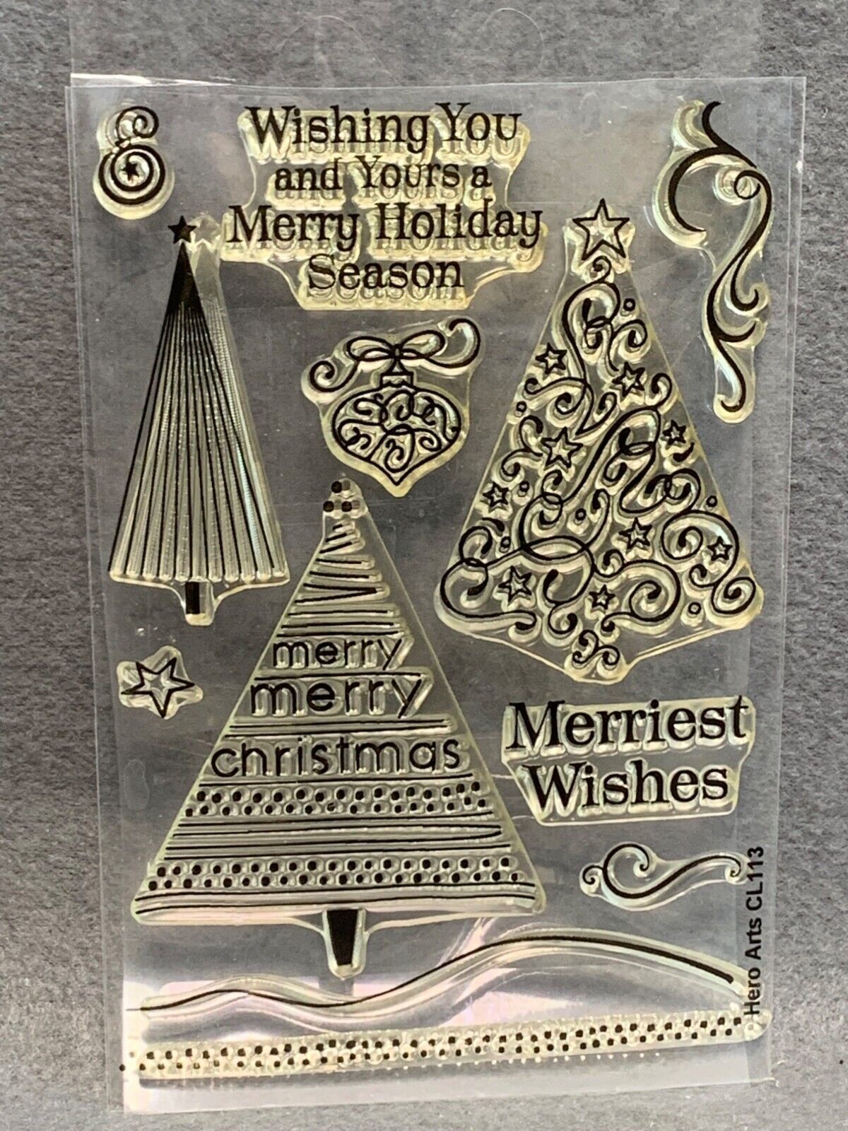 Hero Arts Holiday Clear Stamps Set CL113 Merry Christmas & Merriest Wishes Trees