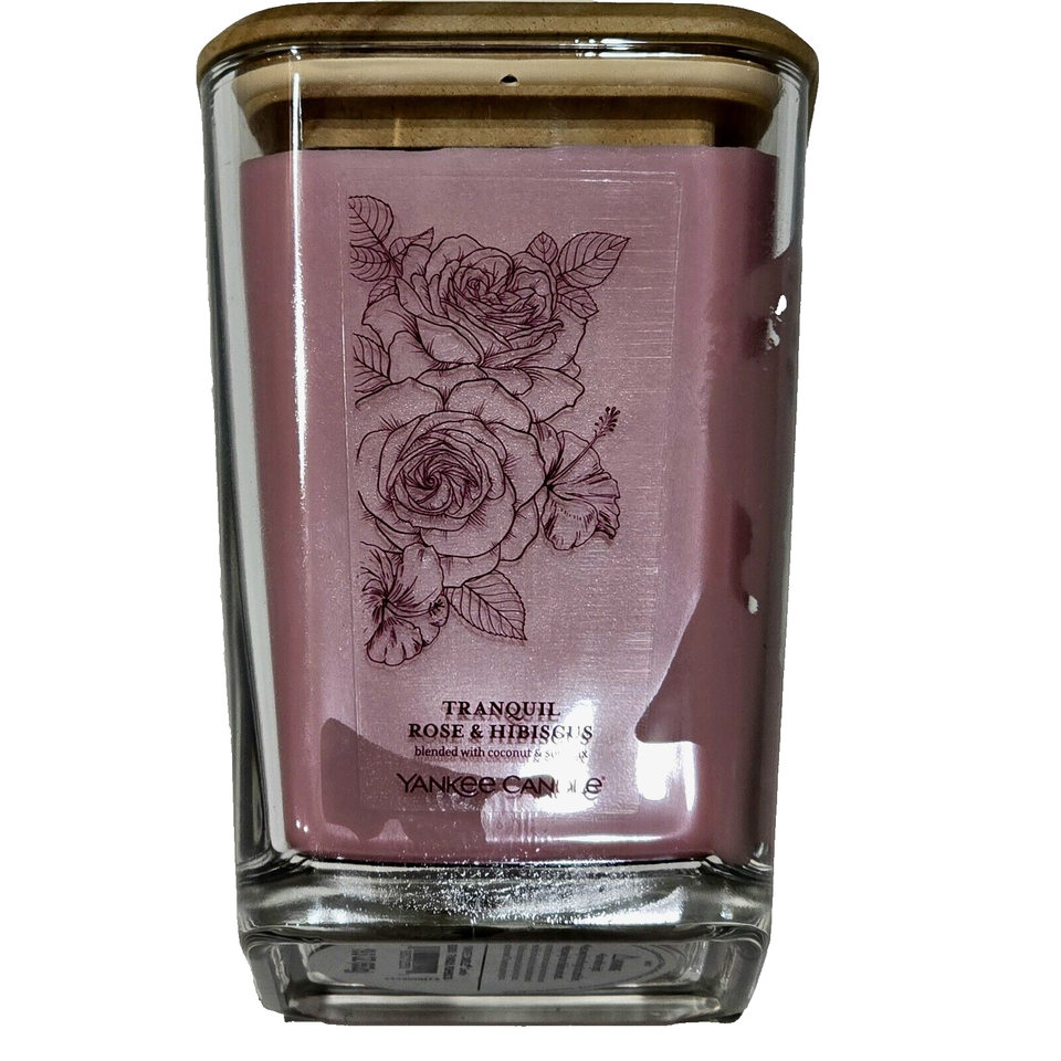 Yankee Candle Tranquil Rose & Hibiscus Coconut Soy Wax 2 Wick Square Glass 19.5