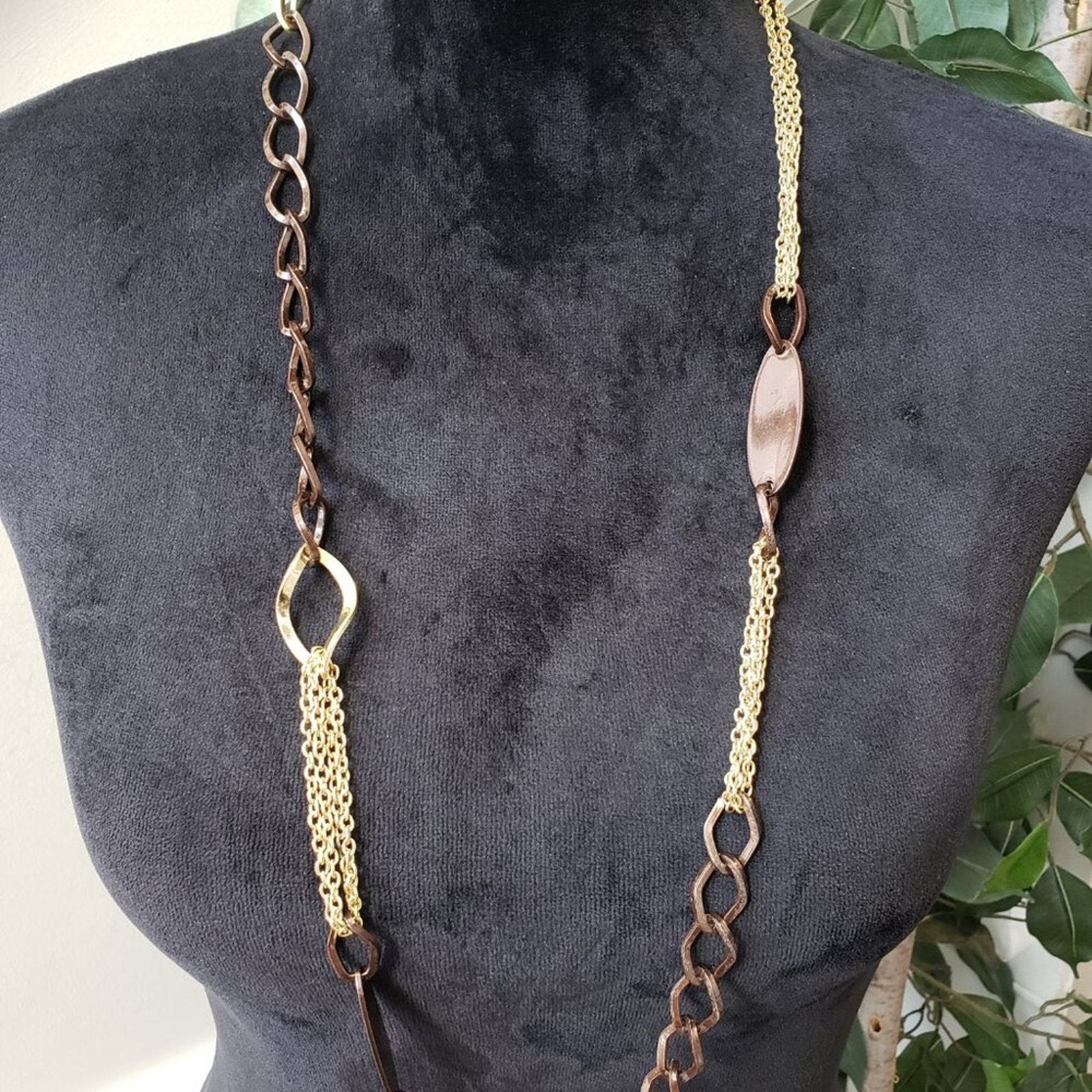 Women's Fashion Daisy Fuentes 2 Tone Chunky Chain Necklace with Toggle Clasp.