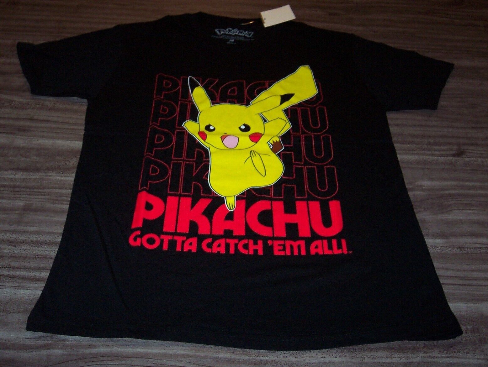 This is a NINTENDO POKEMON PIKACHU Gotta Catch 'Em All T-shirt. It is a size MEDIUM, and it is NEW with the tag. It is 20 1/2 inches from armpit to armpit and 29 1/2 inches in length. Combine auctions to save on shipping. AD