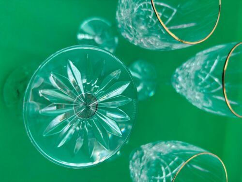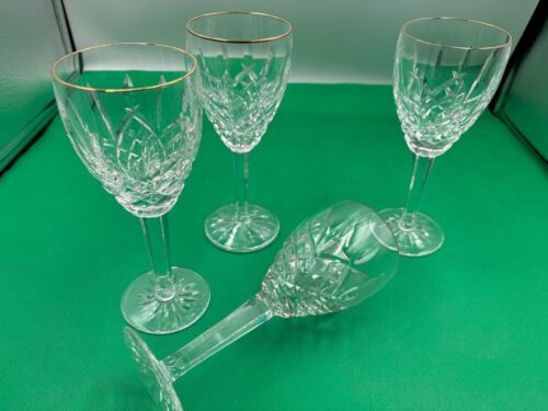 Set of 4 Waterford Crystal GOLDEN ARAGLIN Wine Glasses 7"