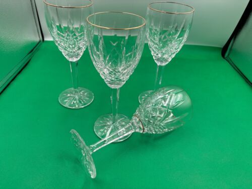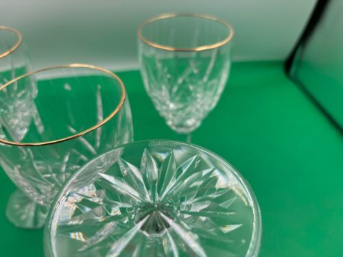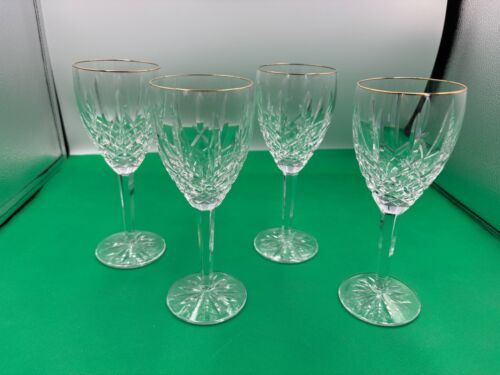 Set of 4 Waterford Crystal GOLDEN ARAGLIN Goblets / Glasses 8"