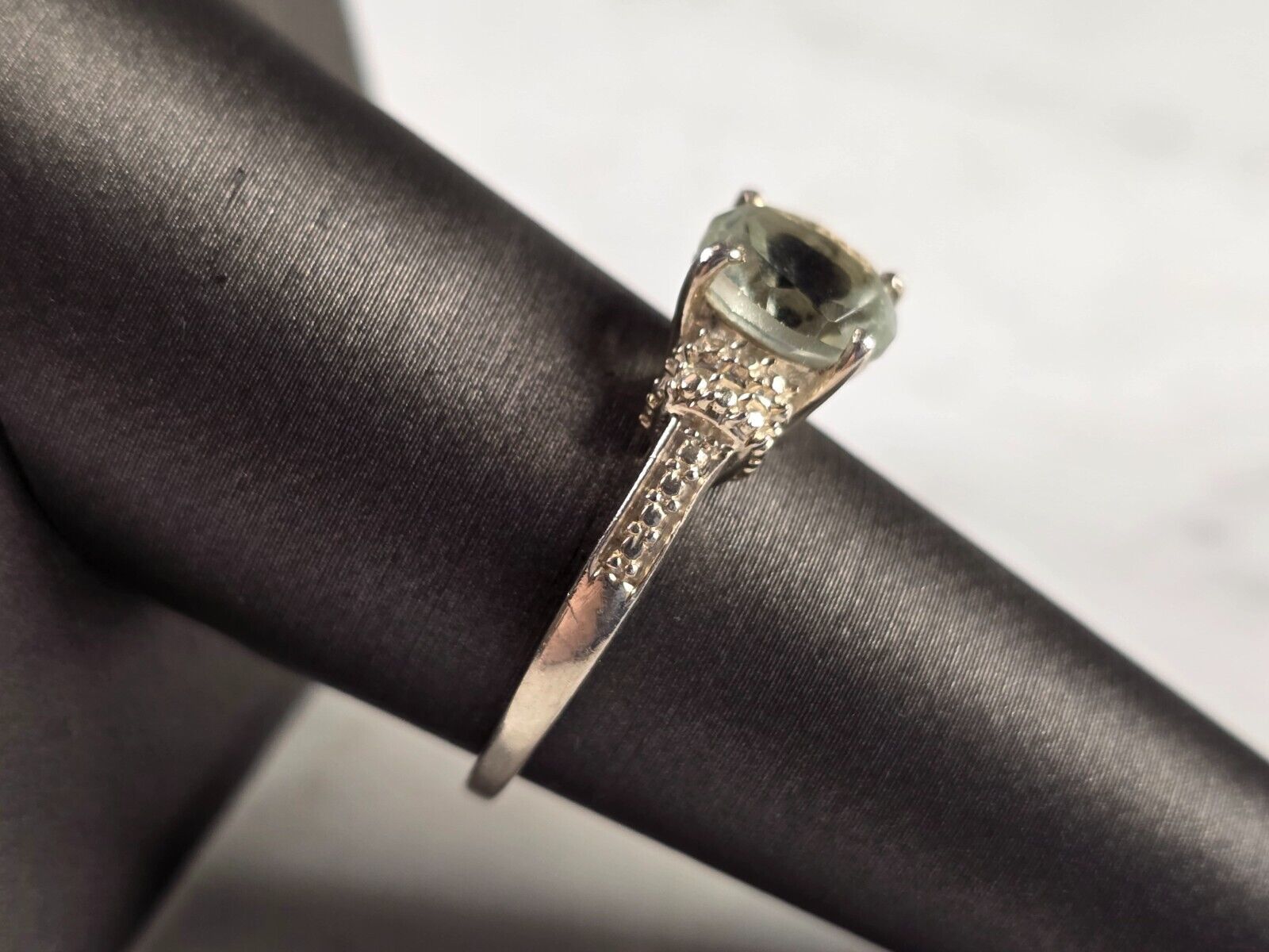 A WOMENS VINTAGE ESTATE STERLING SILVER RING WITH WHAT APPEARS TO BE A TOPAZ COLORED STONE, ACCENTED WITH CZ STONES. RING WEIGHS 3.1g. THE RING IS A SIZE 8.0. THE WIDTH OF THE RING IS 3/8". THIS WOULD MAKE A NICE GIFT FOR THAT SOMEONE SPECIAL. ANY QUESTIONS PLEASE DO NOT HESITATE TO ASK. BE SURE TO CHECK OUT SOME OF MY OTHER GREAT ITEMS UP FOR SALE. THANK YOU