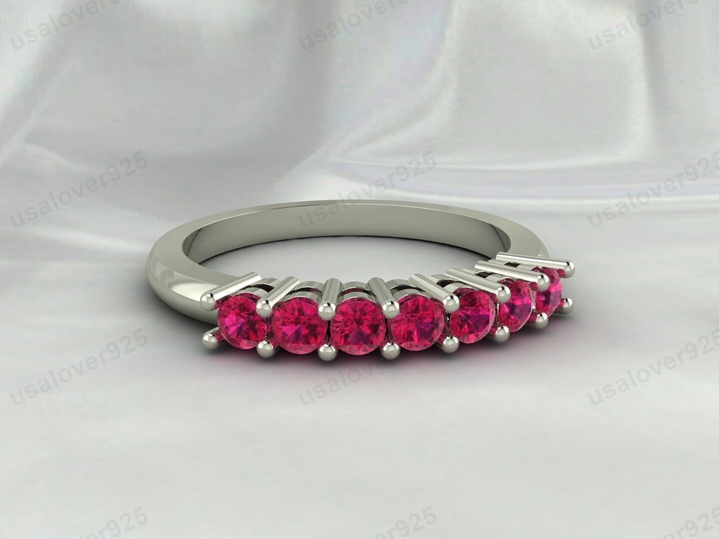 Ruby Pink Gemstone Eternity Ring, 925 Sterling Silver Handmade Women's Jewelry