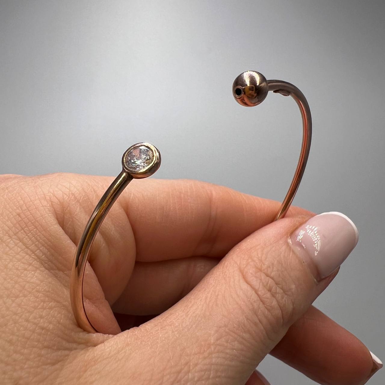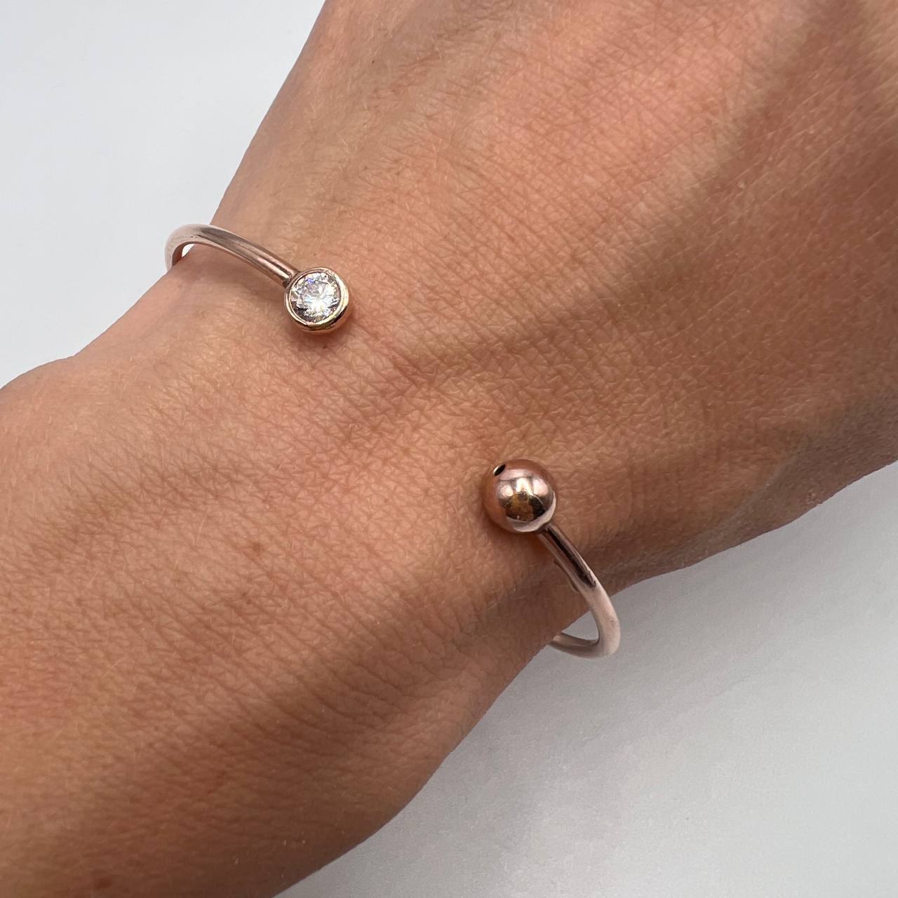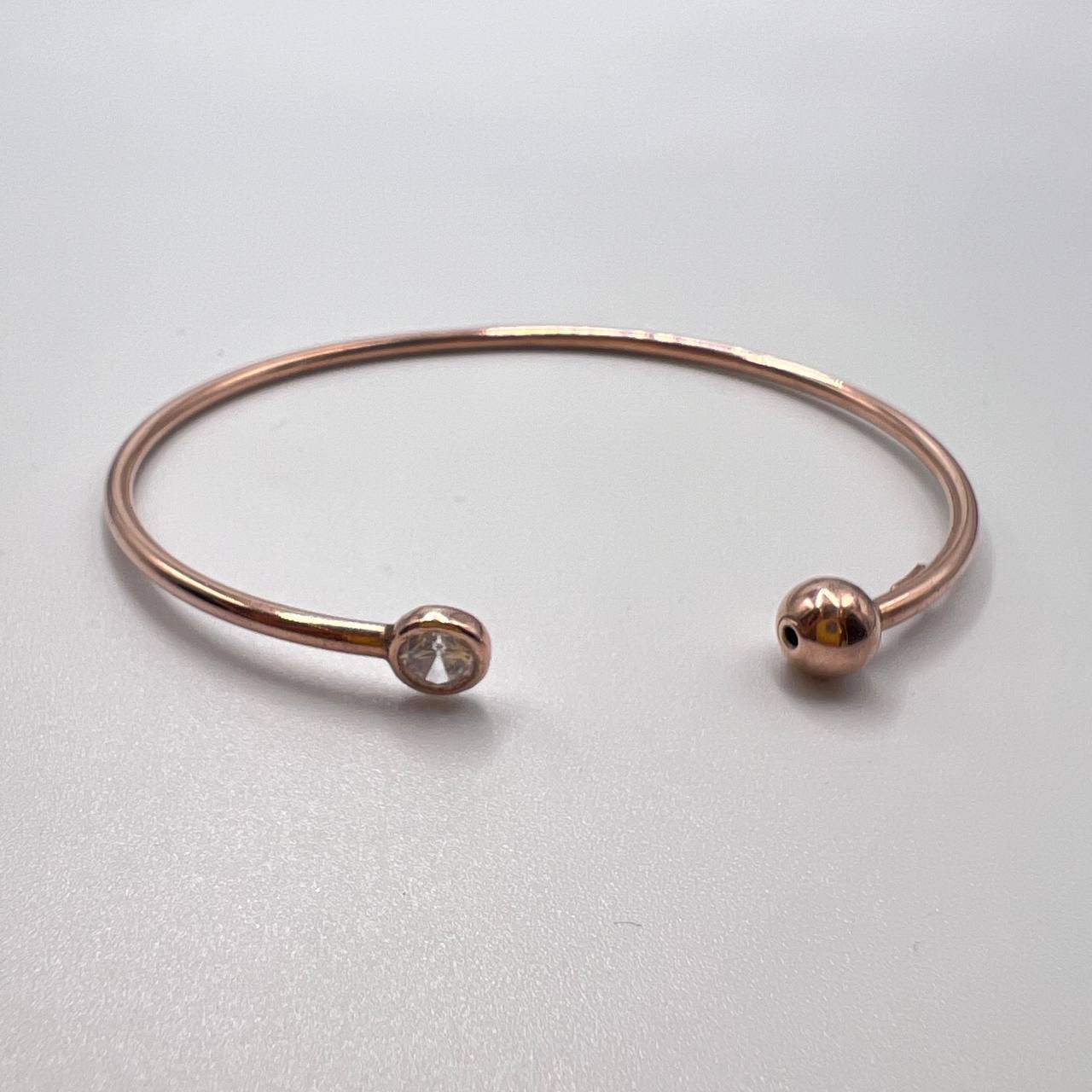 A hard bracelet that fits well on the hand, the ends are decorated with