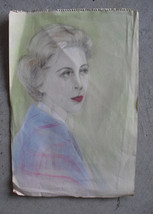 This is a very nice, original colored pencil drawing or painting of a nice looking short hair blonde woman in the picture. Unsigned, circa 1970s to 1980s era. Very good shape as shown, edge and corner wear, could trim to look better for framing. Zoom in for details. About 18 x 12 inches. Check out all the other original watercolors that I'm