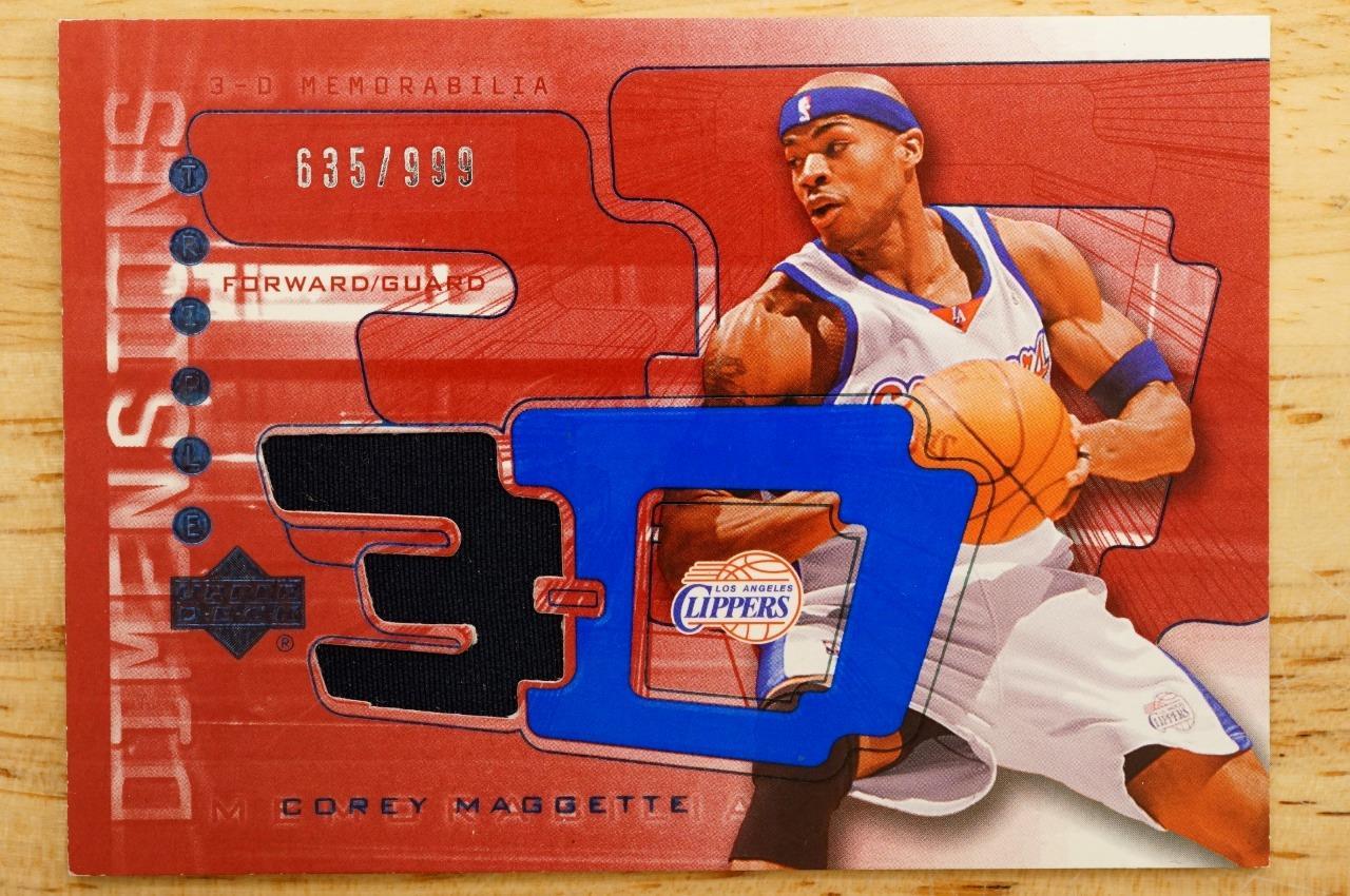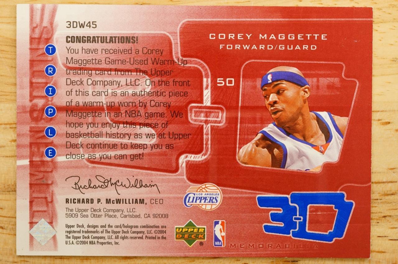 2003-04 Upper Deck Triple Dimensions 3-D Memorabilia Warm-Up 635/999 Corey Maggette
