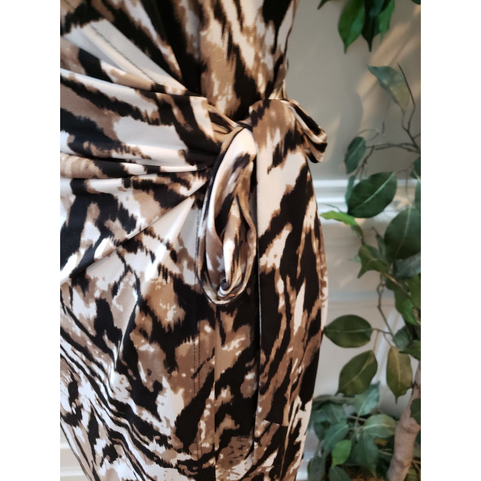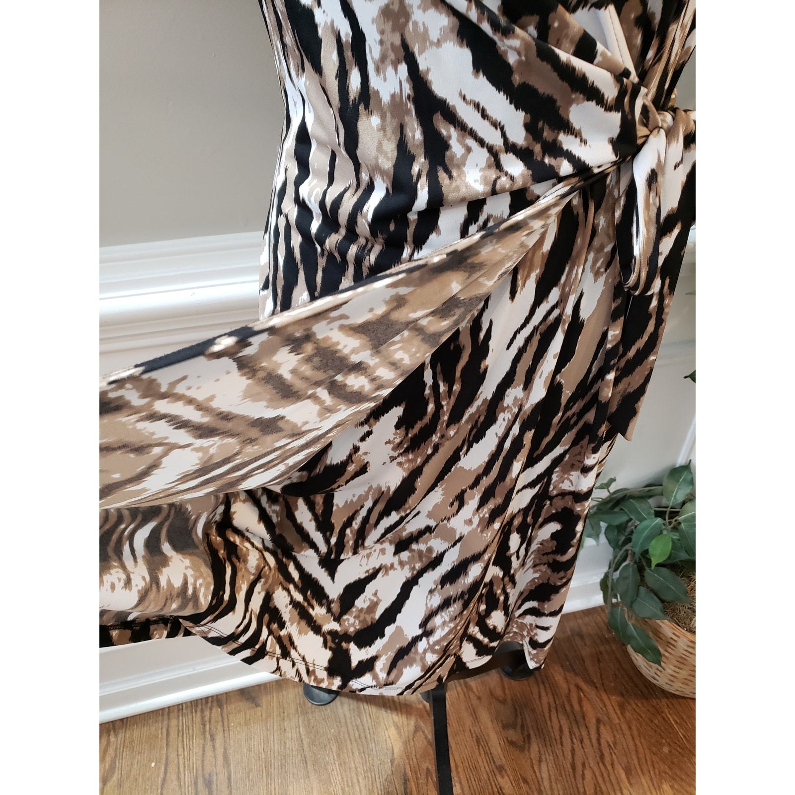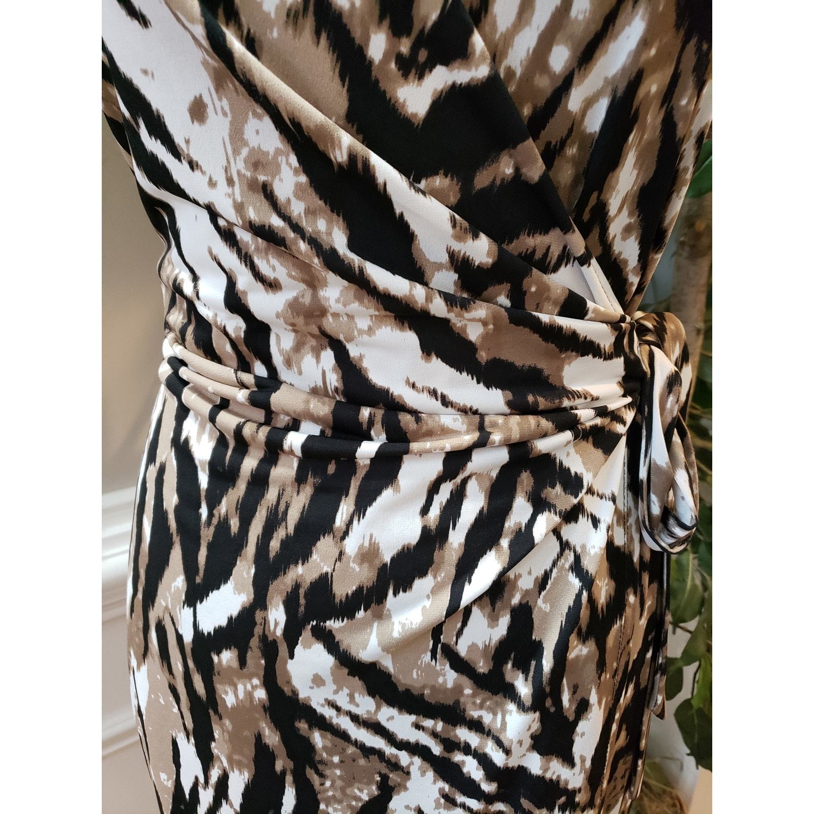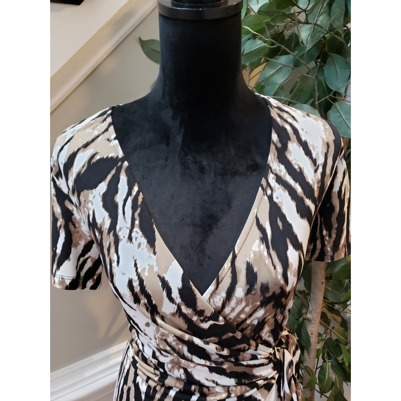 Connected Apparel Wrap Dress Women 6 Multi Animal Print Stretch Tie Waist V Neck