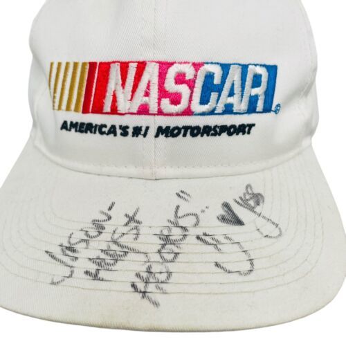 Y2K NASCAR Logo Race Car Snapback Beige Hat Cap Retro VTG Signed Jess Hooters