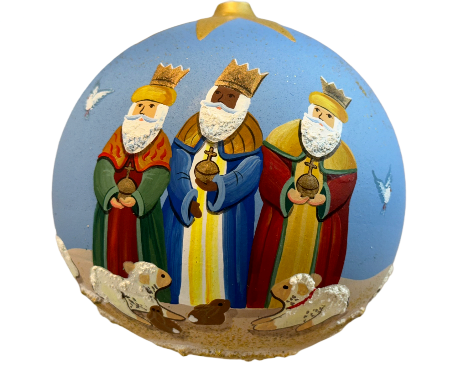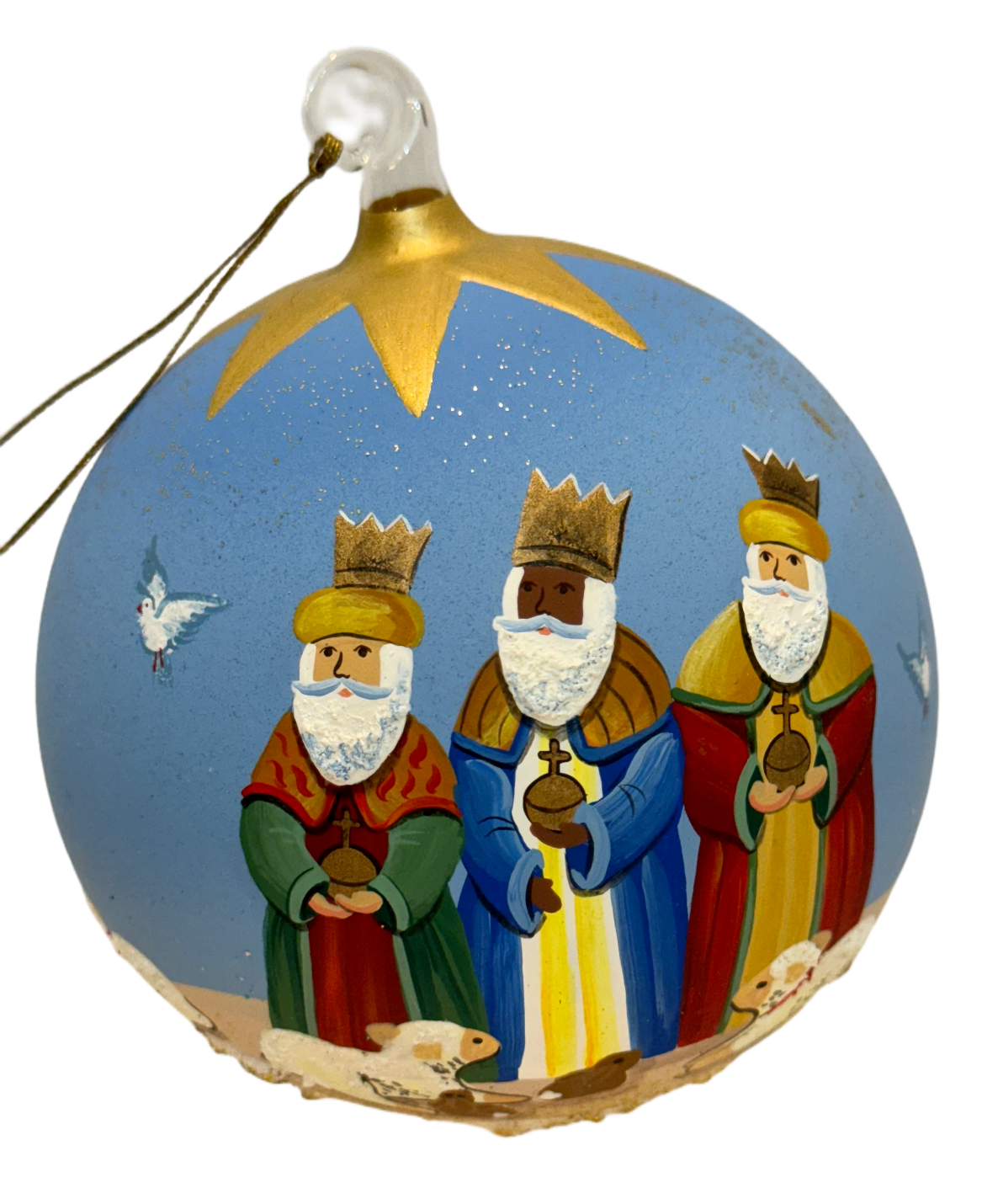 Nativity Scene Christmas Ball Hand Crafted Blue Multicolor Jesus Mary Joseph