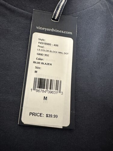 Vineyard Vines Men’s L/S Whale Dot Grid Pkt Tee.Sz.M.Blue Blazer.MSRP$39.99