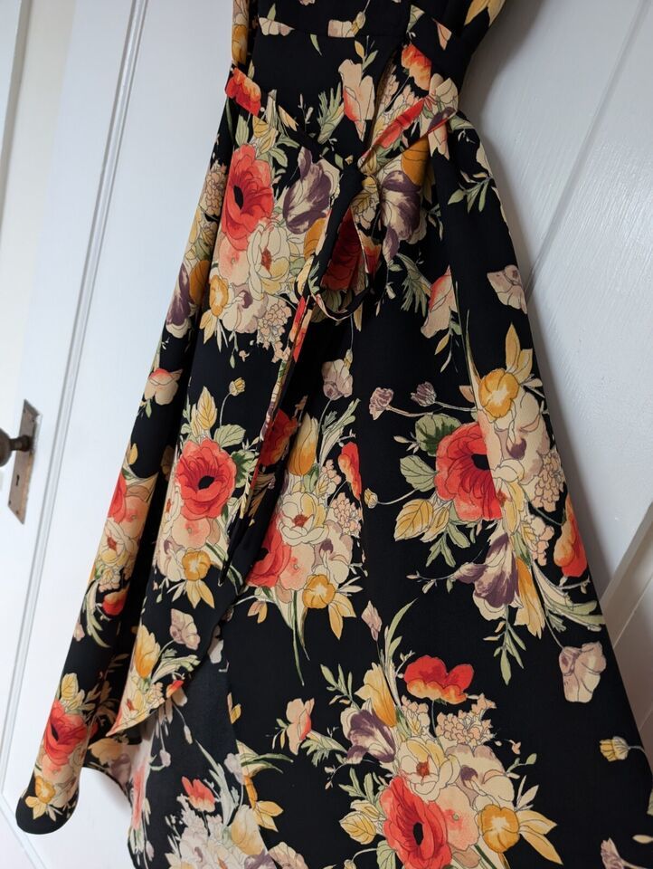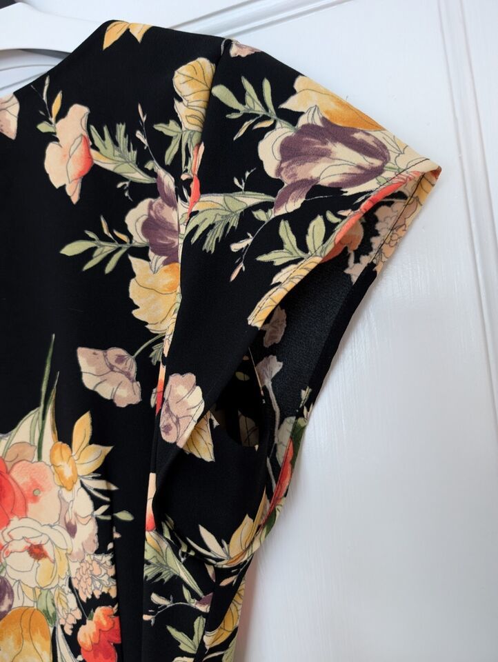 New Sanctuary Floral Print Wrap Midi Dress V-neck Medium, flutter sleeve black
